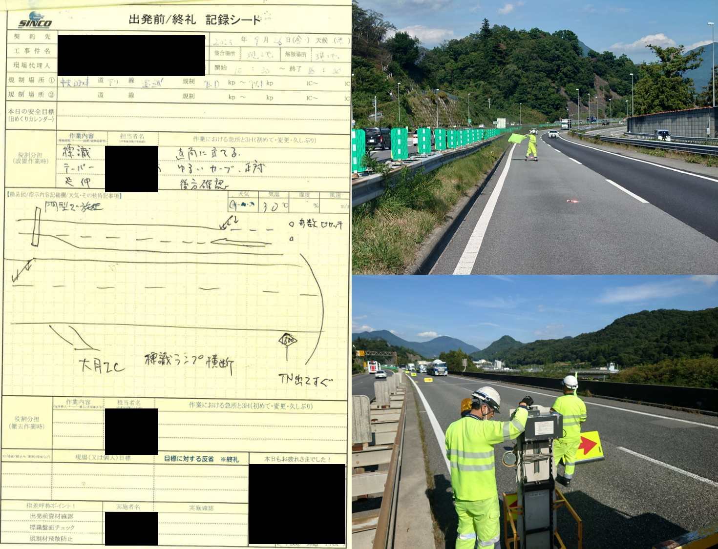 ・離脱しPAでの飛散防止と矢印の向き変更時に輪留めの徹底