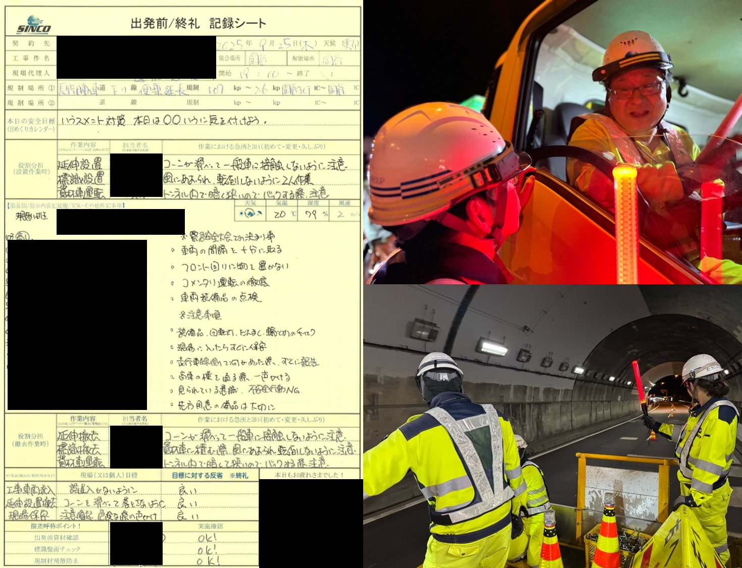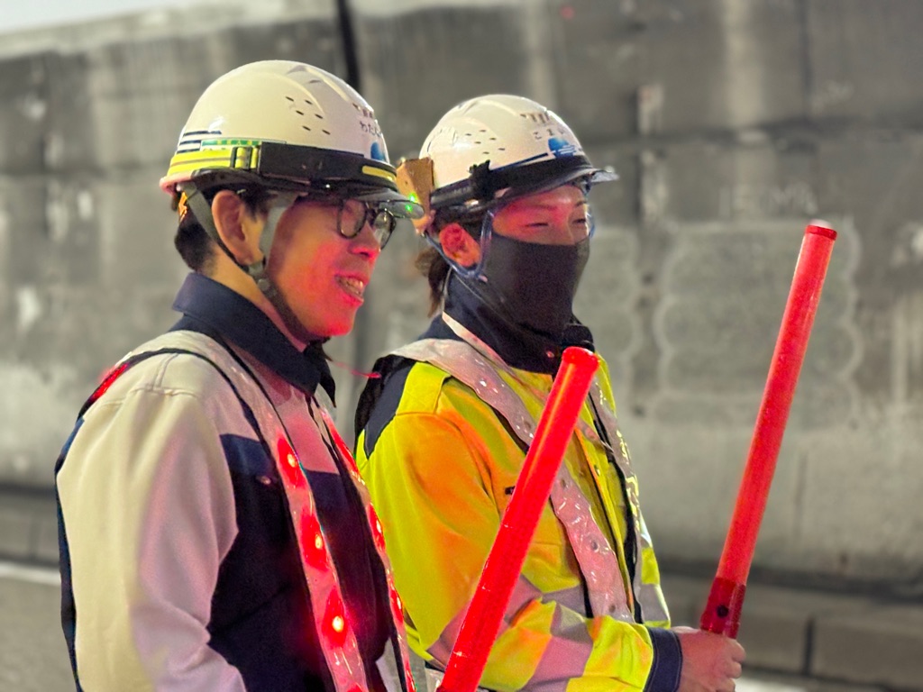 歩行者や一般車が多数往来する箇所は「声に出して」遂行している所を確認。
