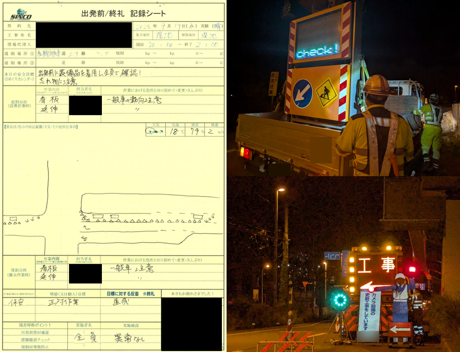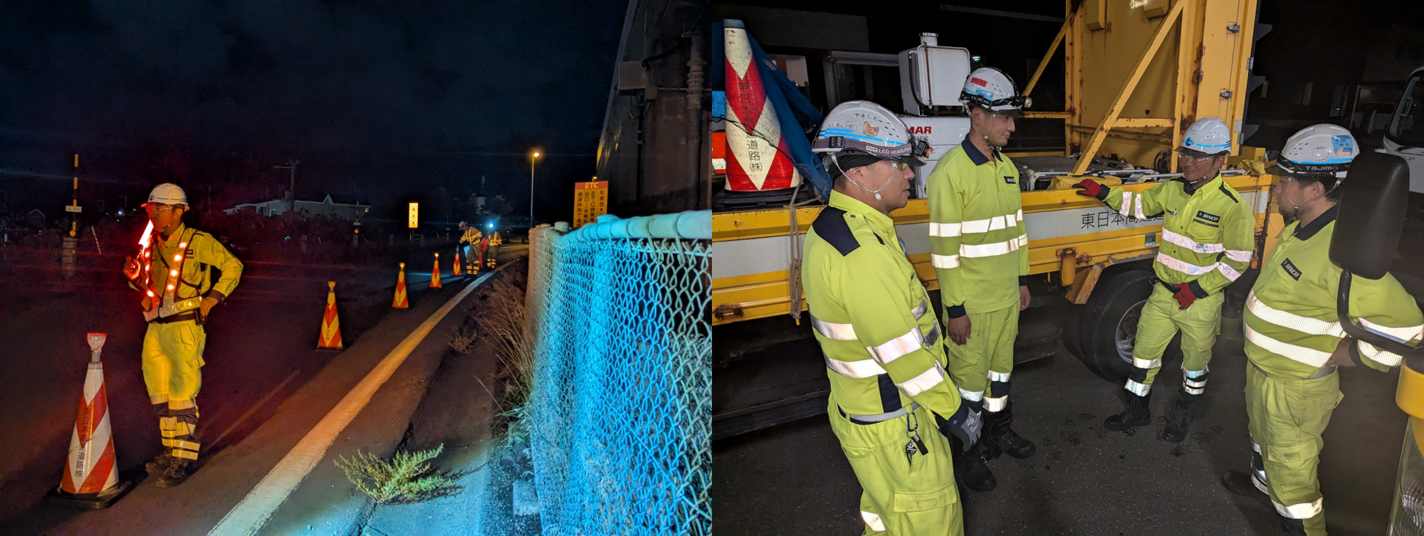 今回先週の車線規制(昼間)から夜間の街路規制に切り替わった3H現場であったが、
