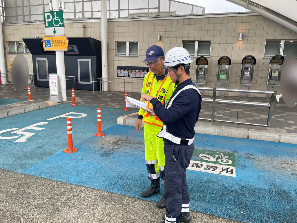 カラーコーンの引きずられ事故を受けて飯塚主任とパトロールして来ました