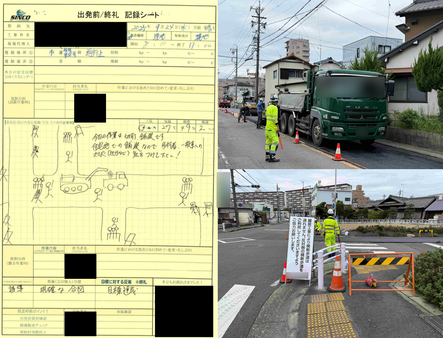 周囲を確認しながら車両通行時には作業員への声掛けを行うように指導。