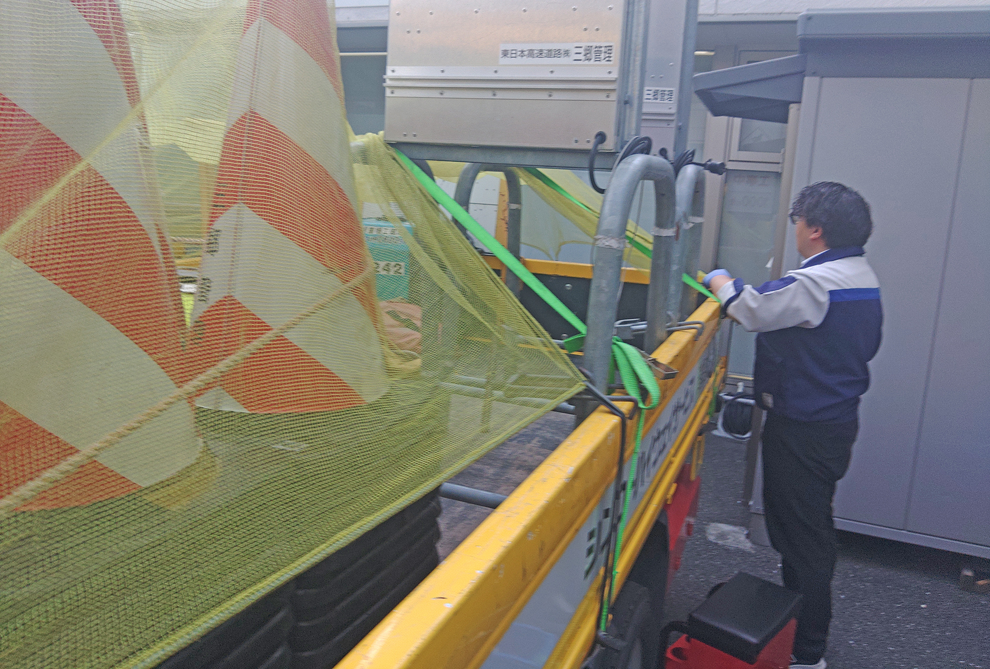 ②荷台のAVが土嚢のみで養生