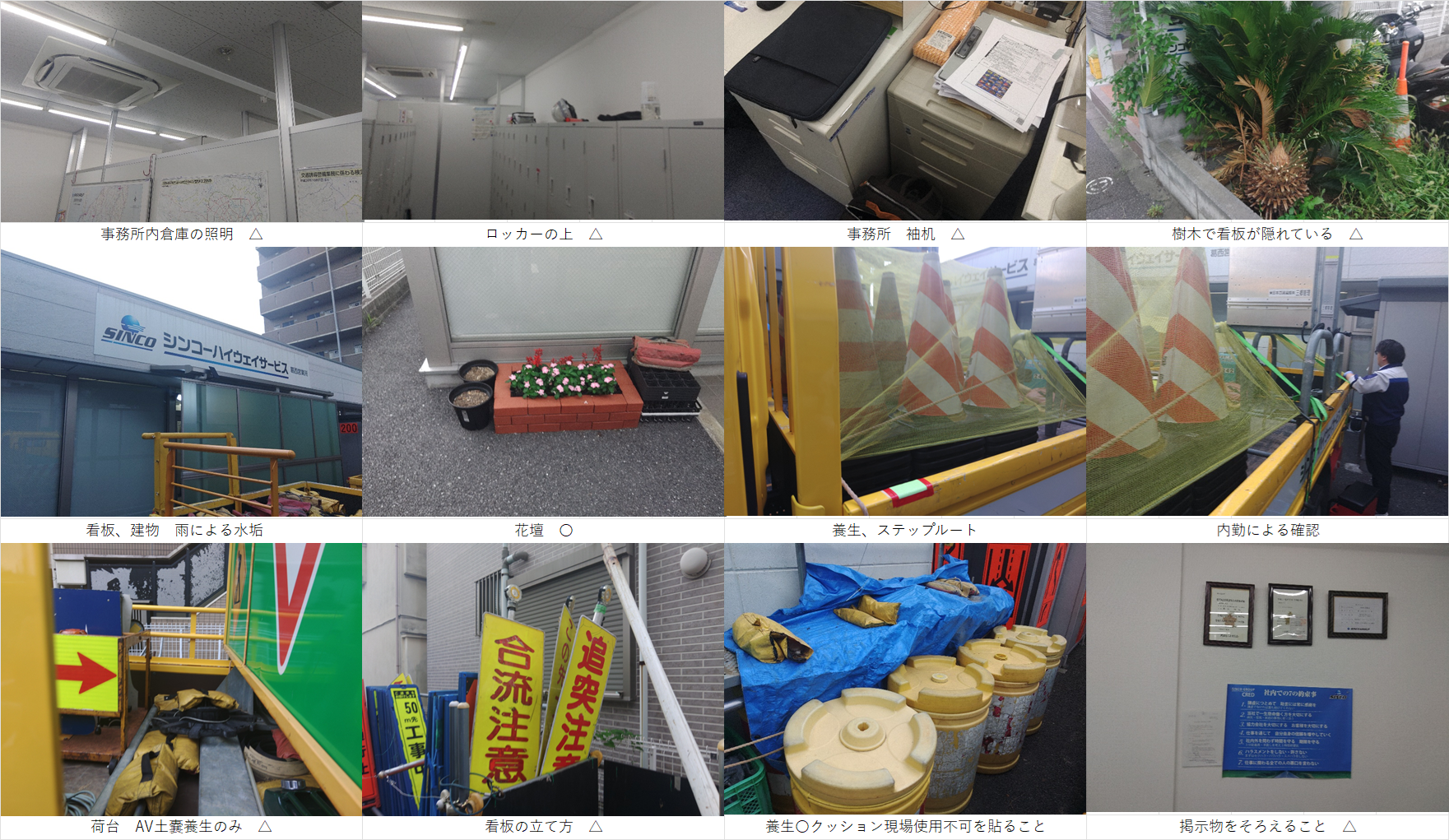 △・・・片付け指示にて是正