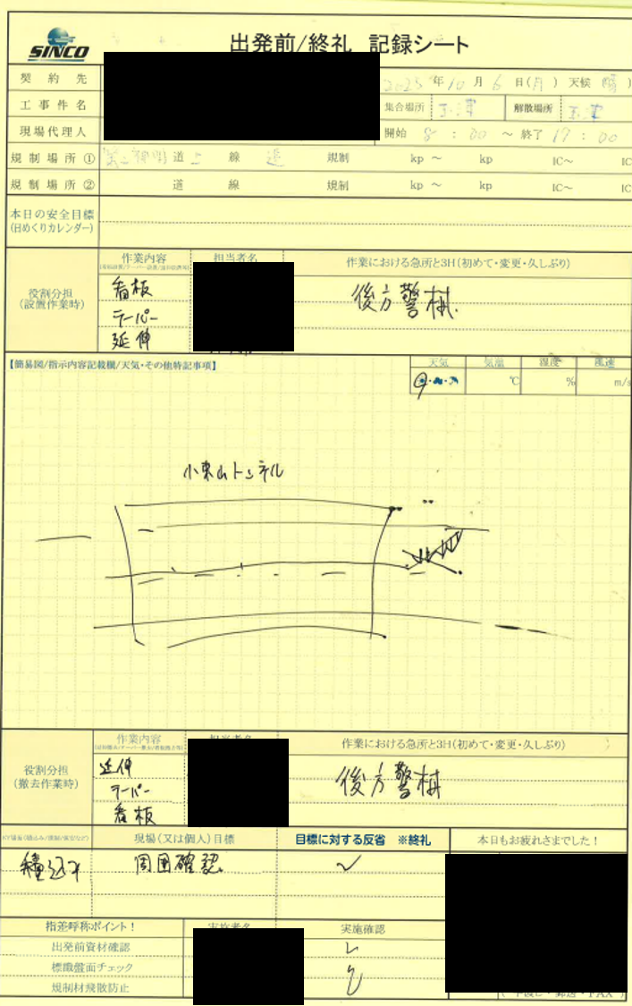 ・前回、行なった追越規制の延伸が短くなった事で、荷台の資材が余ることでの躓き等に注意すること。