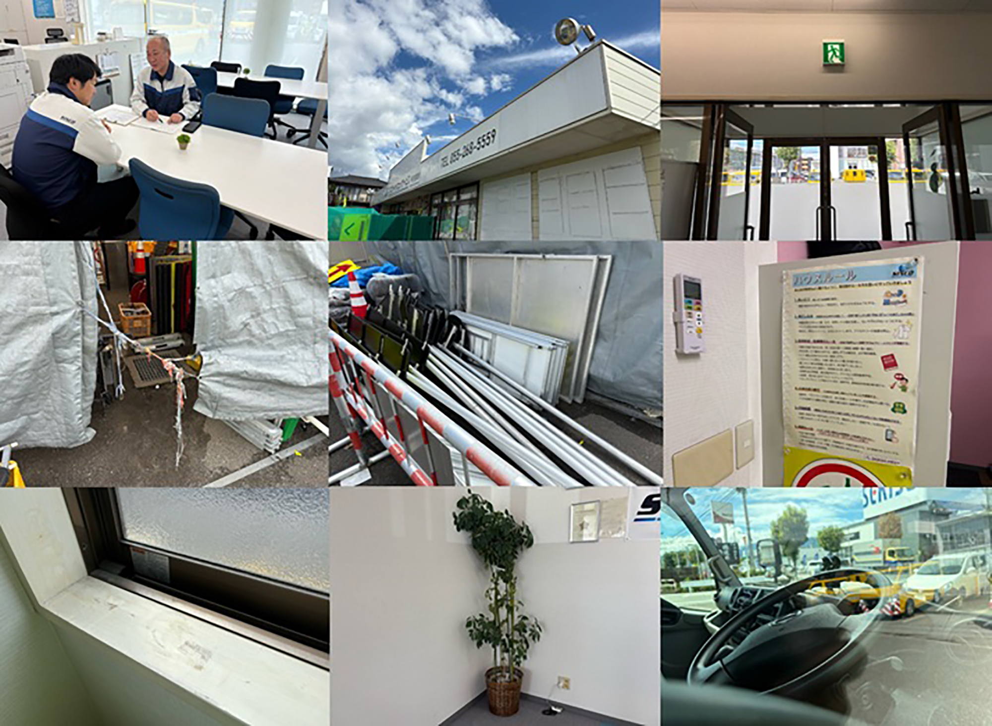 営業所内の施錠はしっかりできているが非常口の明示が不十分(※始めてくる人は迷いやすい)ので明示をすること。