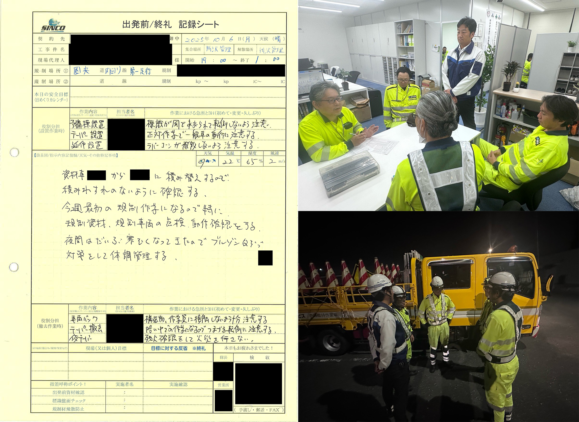 上記2点を重点項目とし、原田副課長と共に13名に対して送り出し教育の実施と設置同行パトロールを行いました。