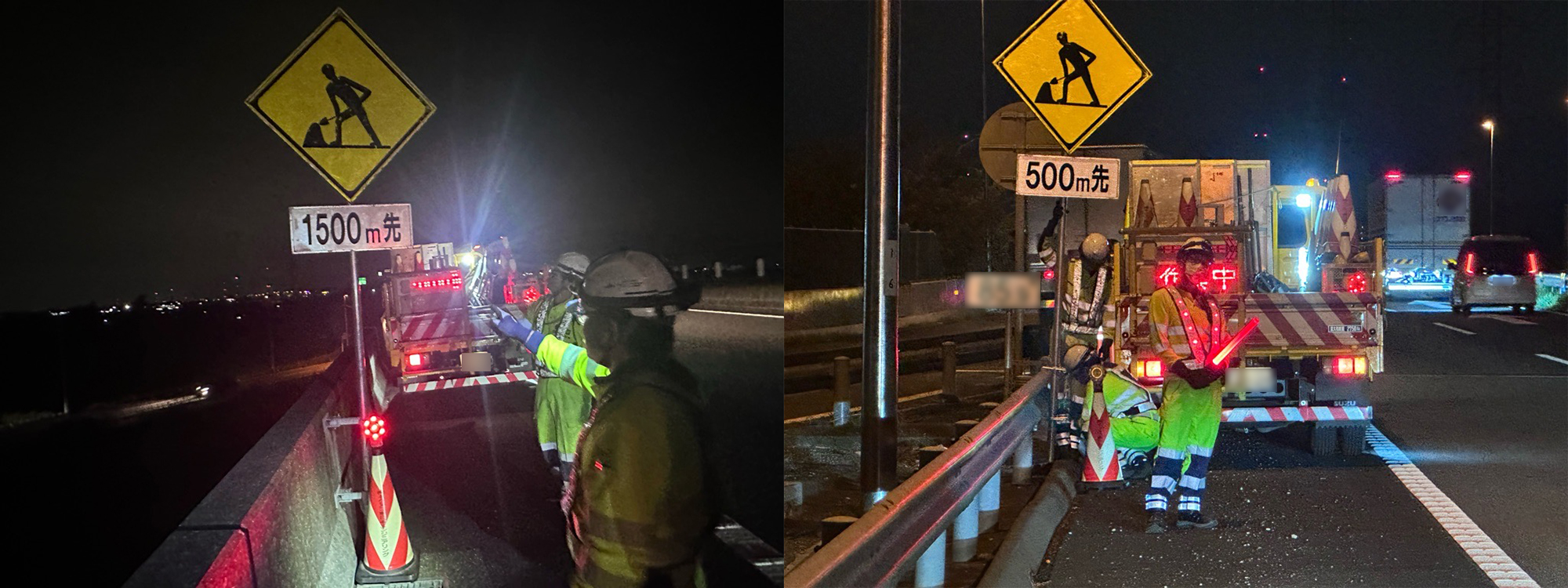 ・路肩部がかなり狭いエリアになるので、予備標識設置撤去時は正対作業を徹底すること