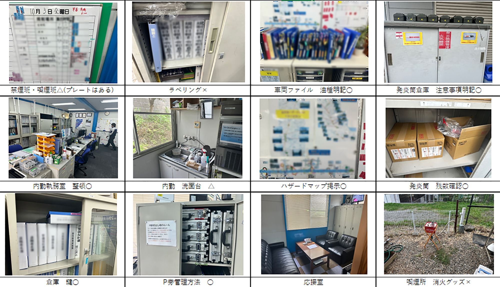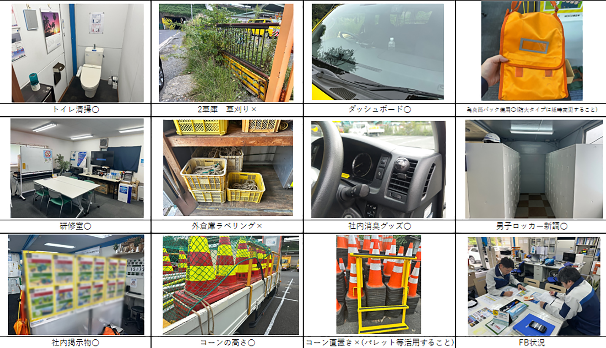金券やP券の管理も良好、掲示物も見える場所へ配置されているので問題はないのですが、営業所内、第二駐車場の収納棚ともににラベルがないので4Sを促進する為にも早急に改善してください。