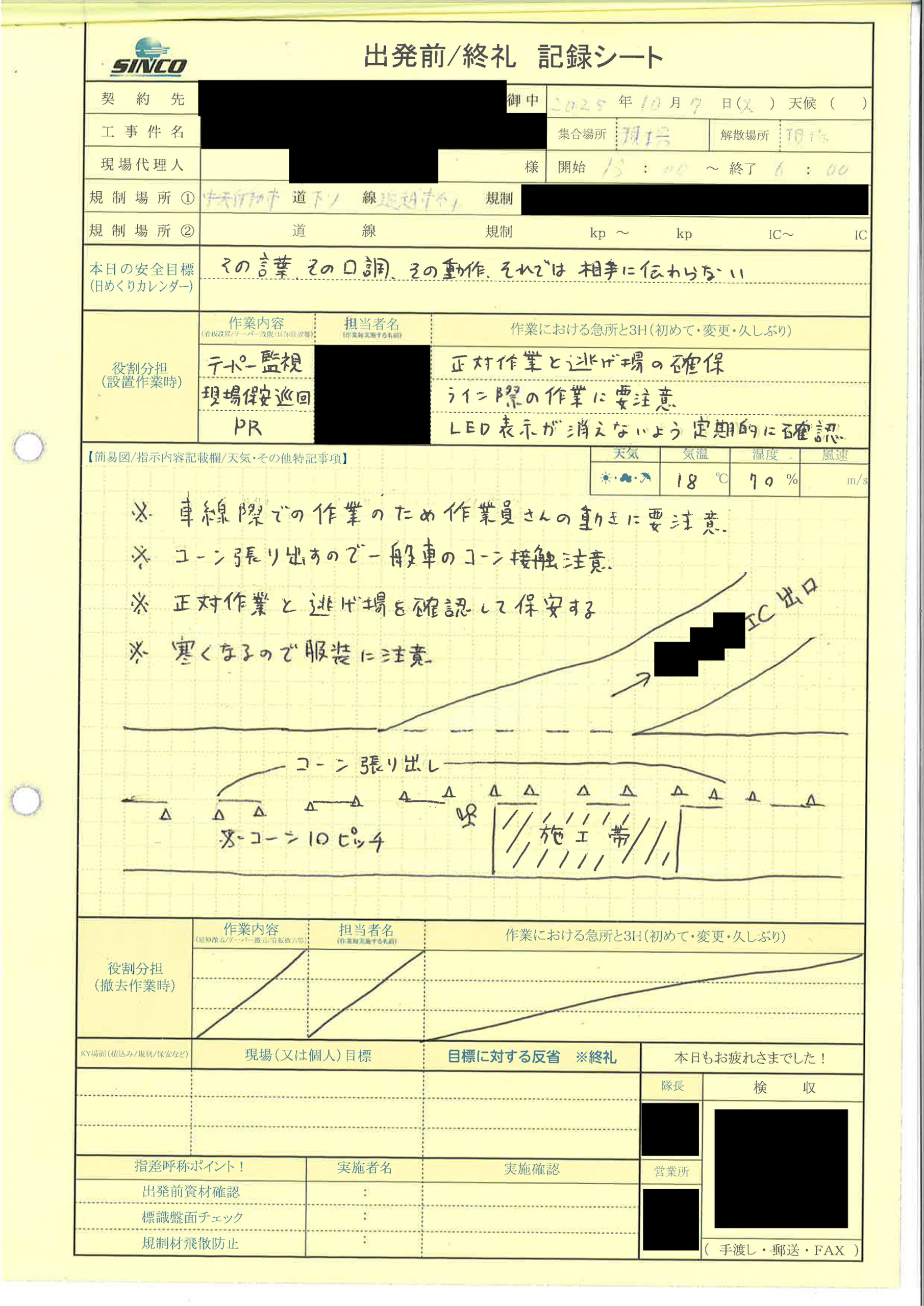 ・コーンを張り出すので一般車とコーンとの接触に注意