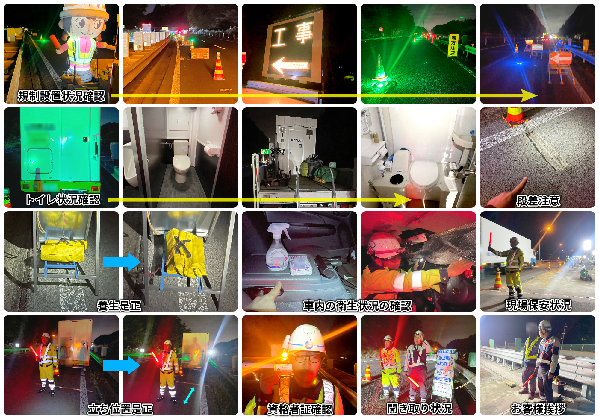看板の固縛方法の改善、立ち位置の是正、トイレ清掃等、指導を通じてより安定現場運営のサポート行って参ります。