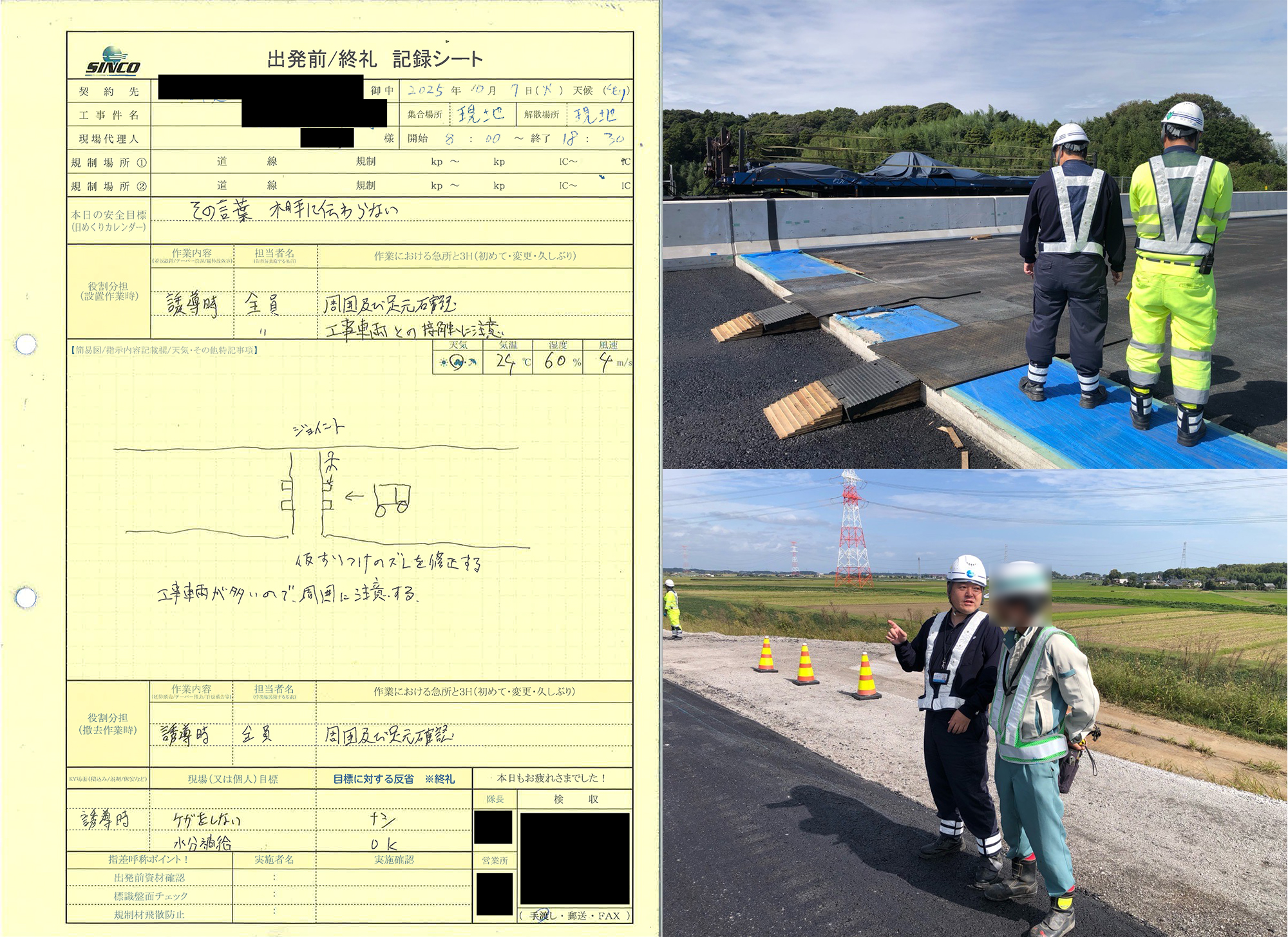 先日、他社で発生した誘導員死亡事故の再周知と誘導状況を確認しました。
