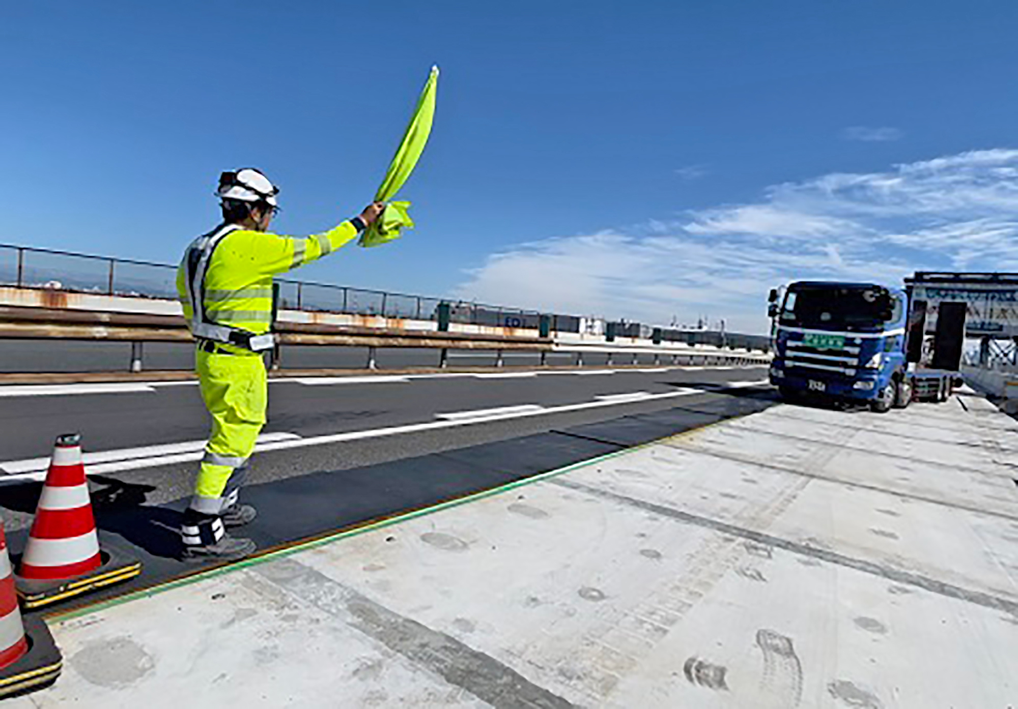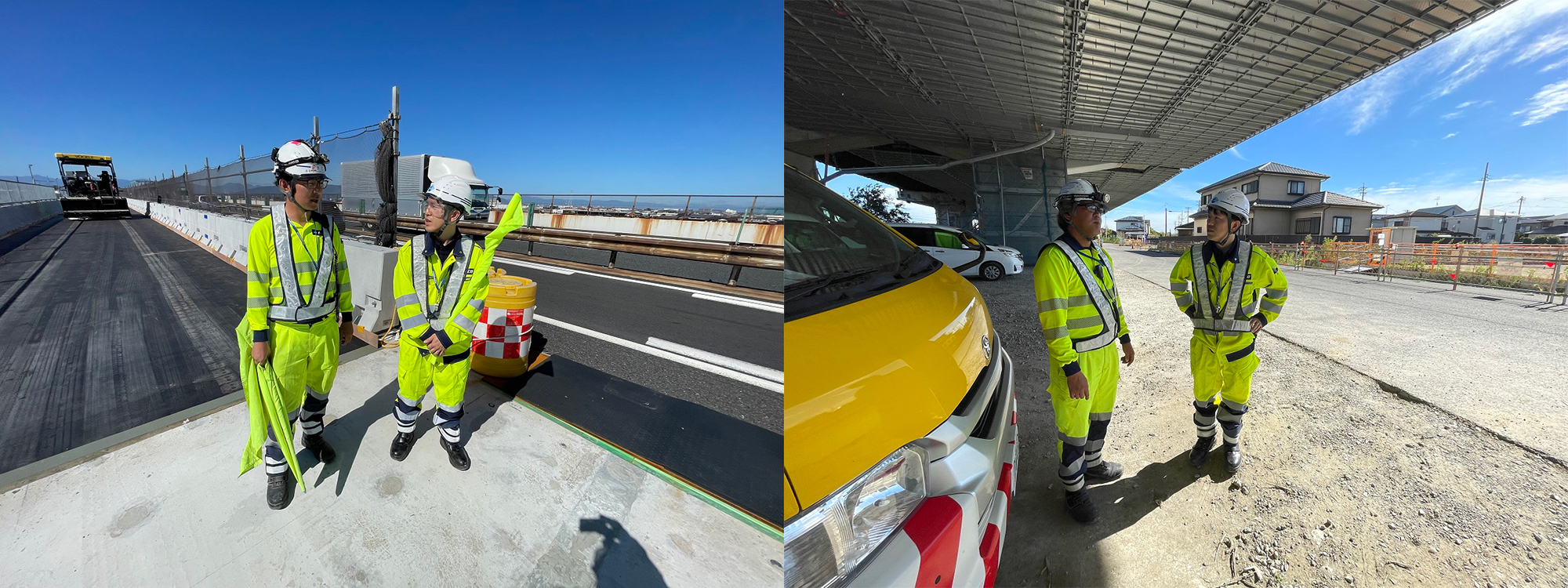 主な業務としては、本線上の5箇所の出入口での工事車両の誘導になります。