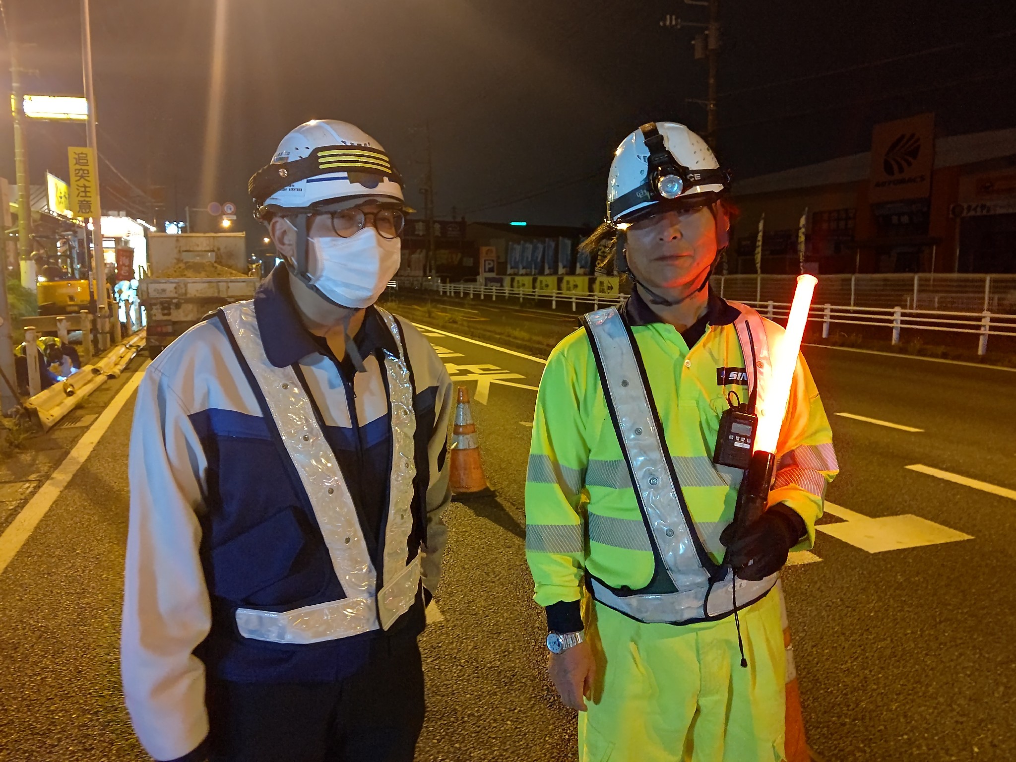 ・国道で一般車が多いので、正対作業を心掛け、一般車の動向をよく確認しながら