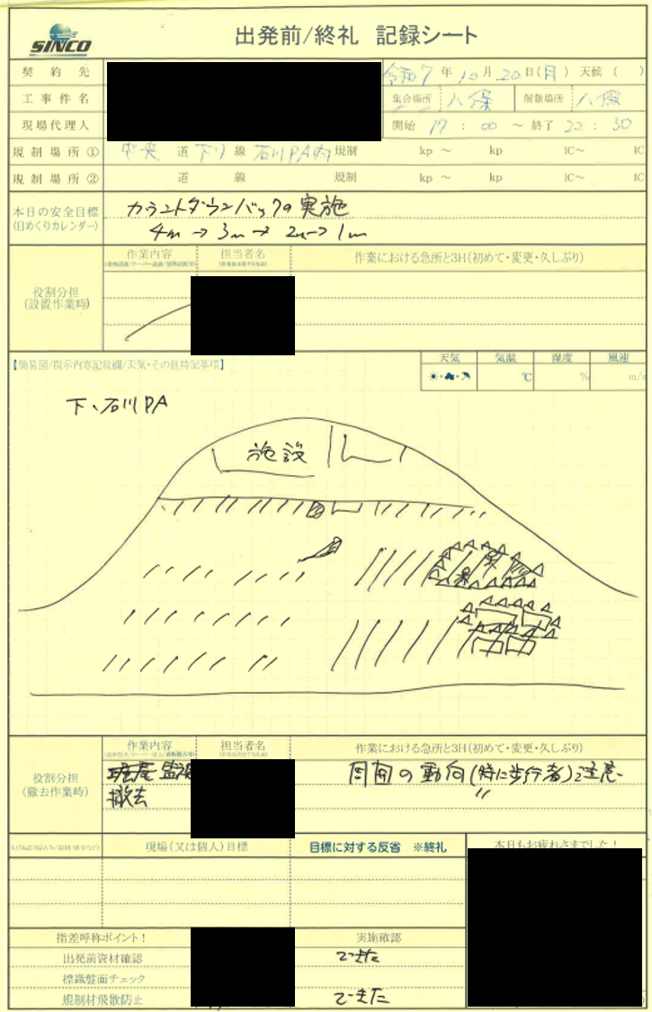 ・施工時、重機移動の際は上流の一般者車両が停止してから移動させること