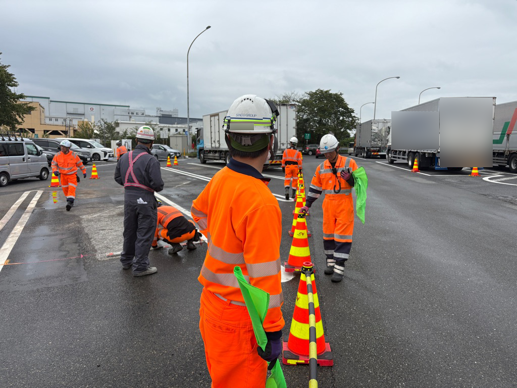 マス確保のために規制を伸ばす際に監視員を立てており一名作業が無いように配慮しており、