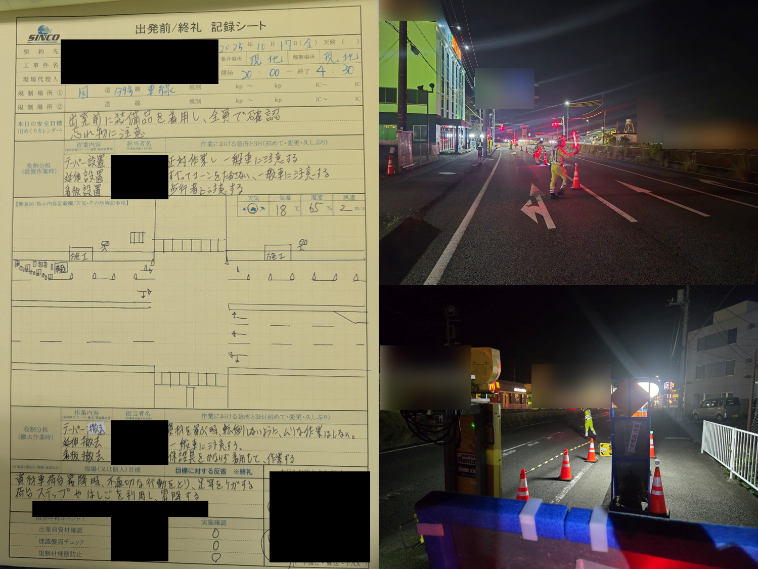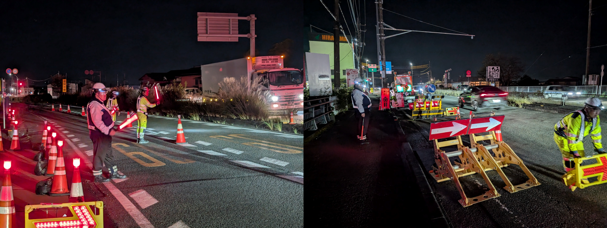 近くに高速道路があり、比較的スピードのでやすい場所での規制作業となります。