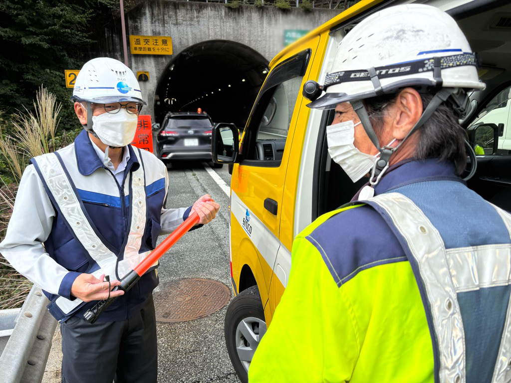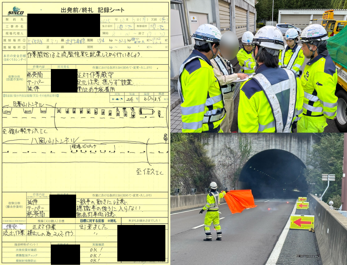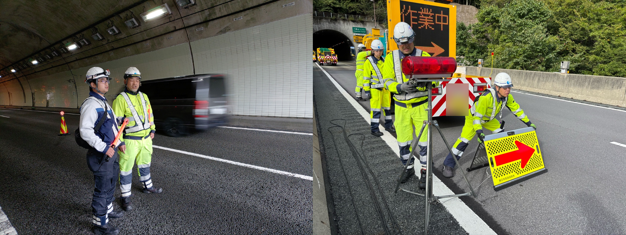 ・トンネルとトンネルの間でのテーパー作業になるため一般車の動向には充分に注意すること
