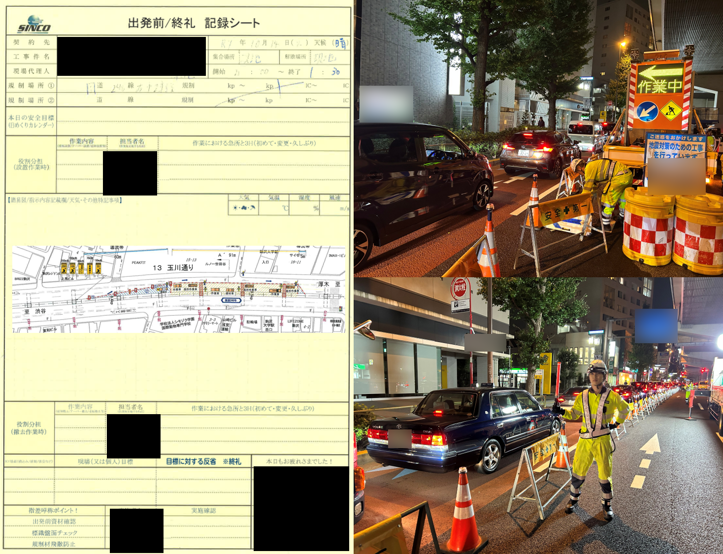 出発前のブリーフィングでは、現地までのルート確認、規制の手順を全体共有をし、