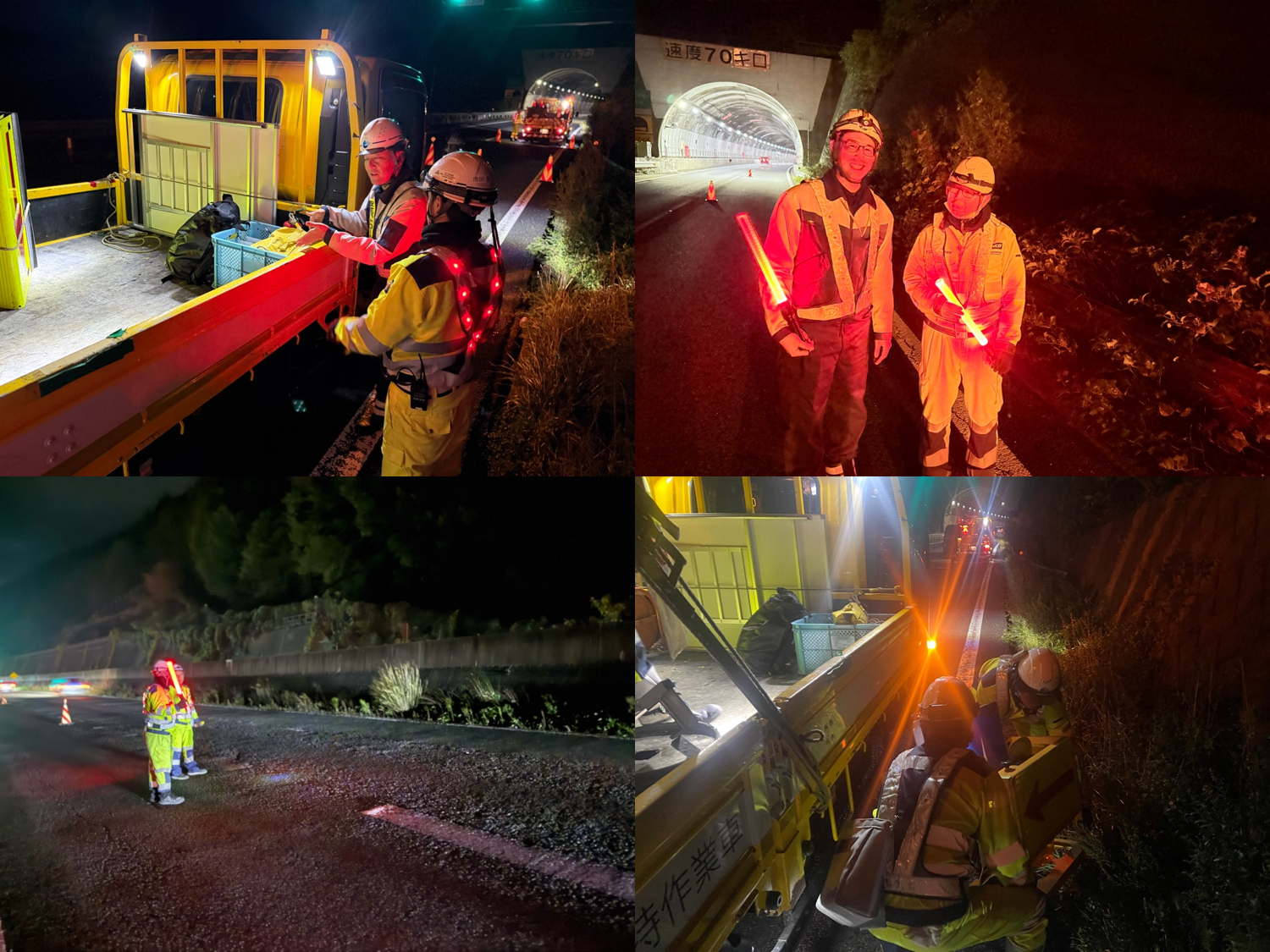 中央分離帯に枯草が多くなってきているので発炎筒の設置位置を共有 消火確認を新人に任せないよう指導。