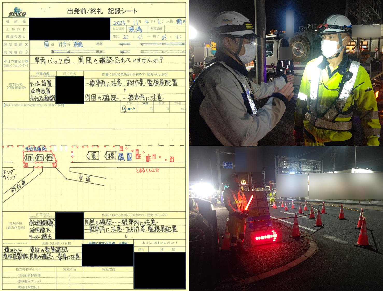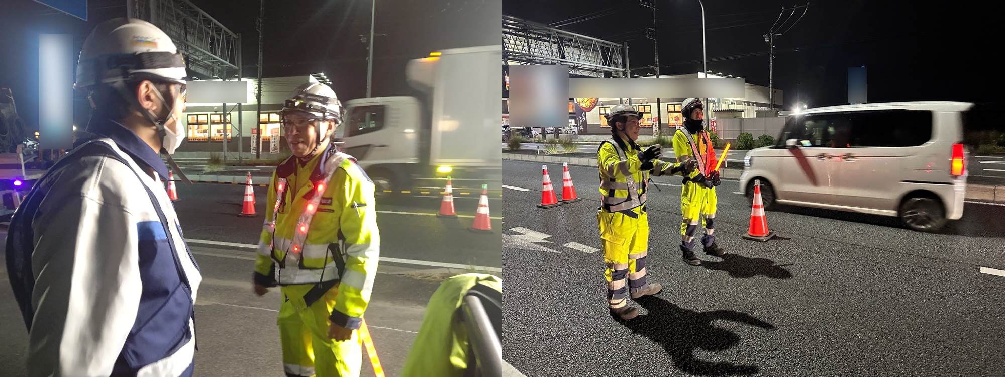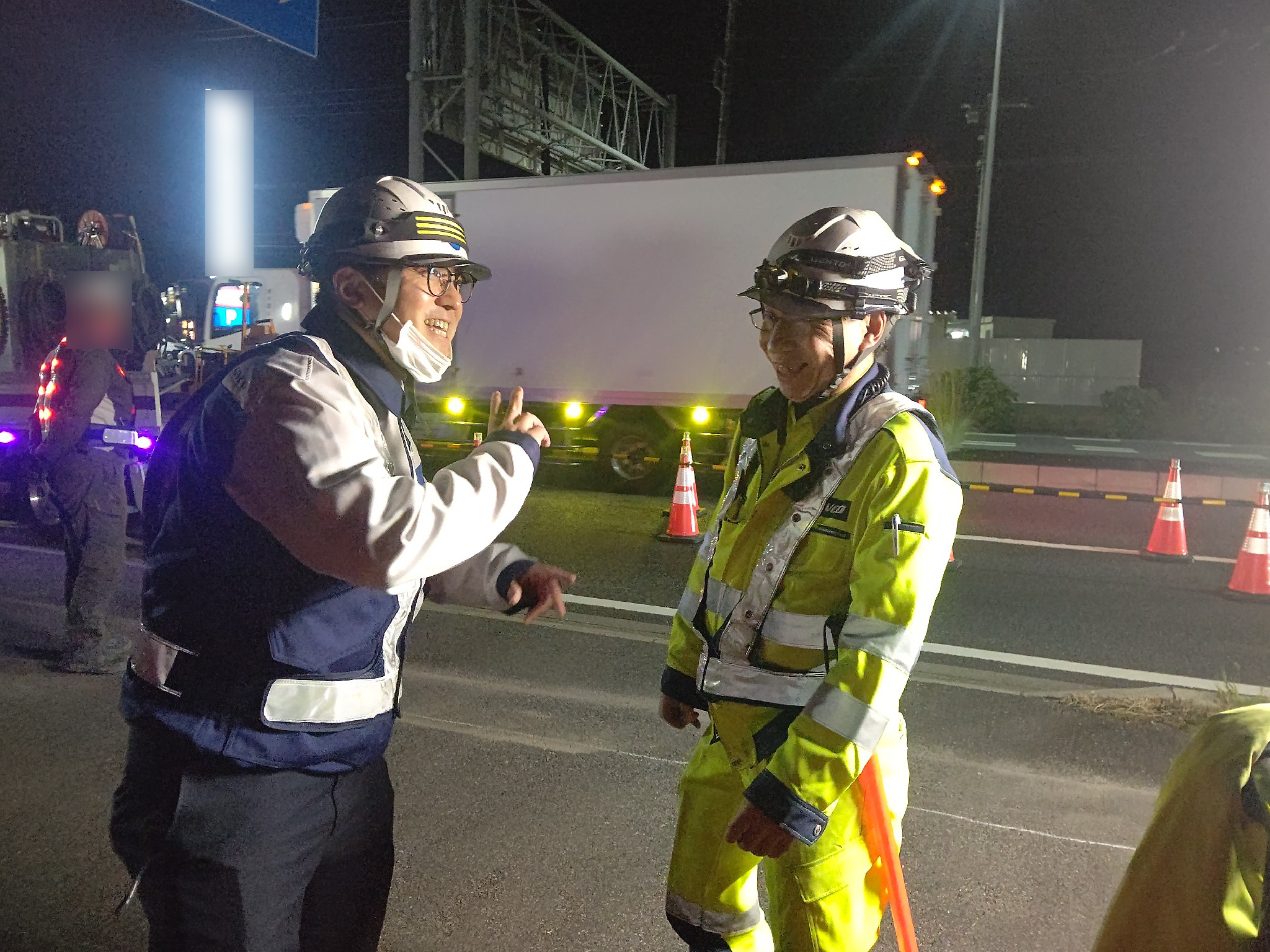 規制の設置間違いがないよう、複数名で規制の確認をする。
