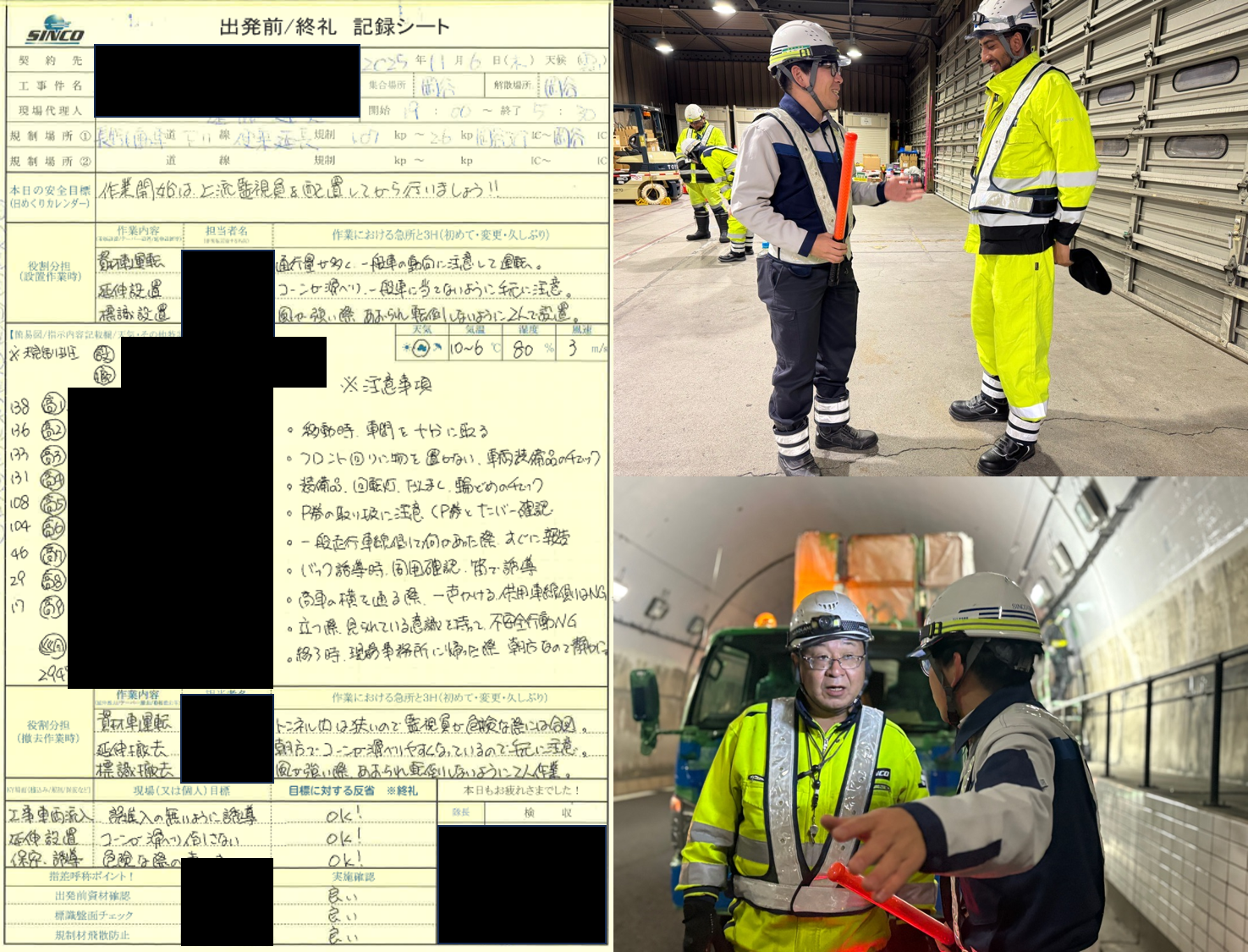 ・停車措置の徹底 …お客様事務所内での停車措置、現場内での停車措置もしっかり行われている。