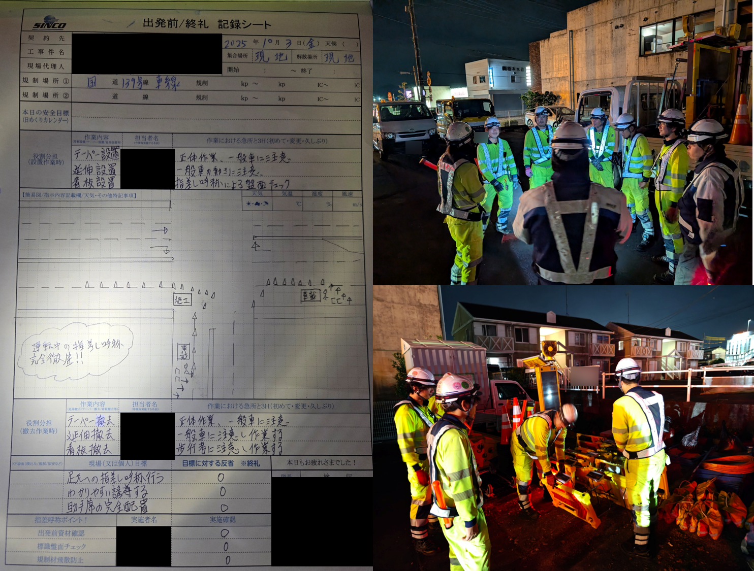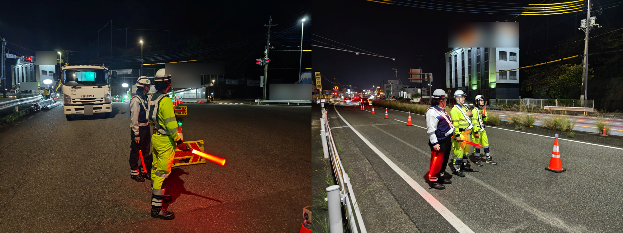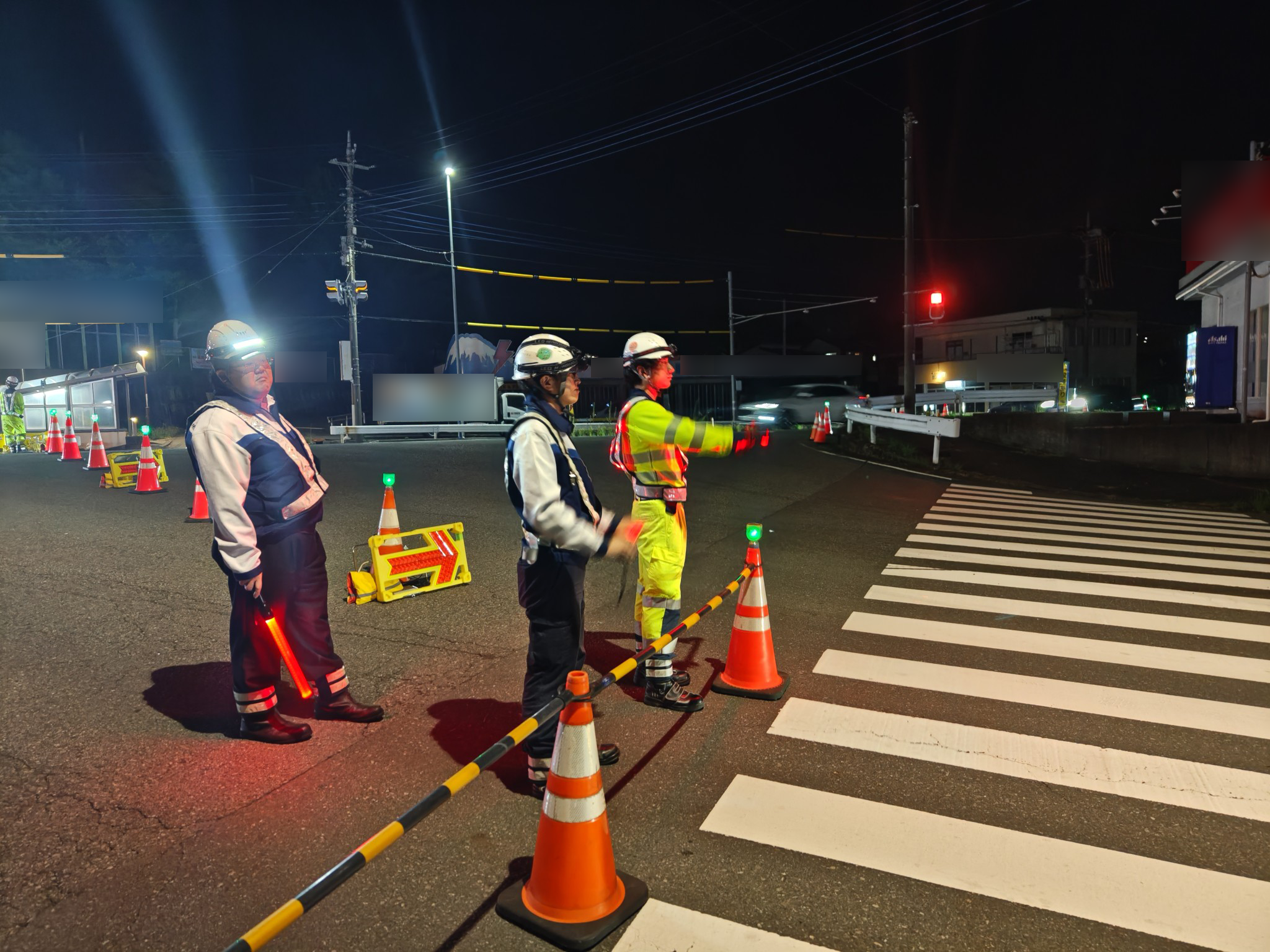 無灯火車両に気を付けながら作業をしている様子がうかがえた。
