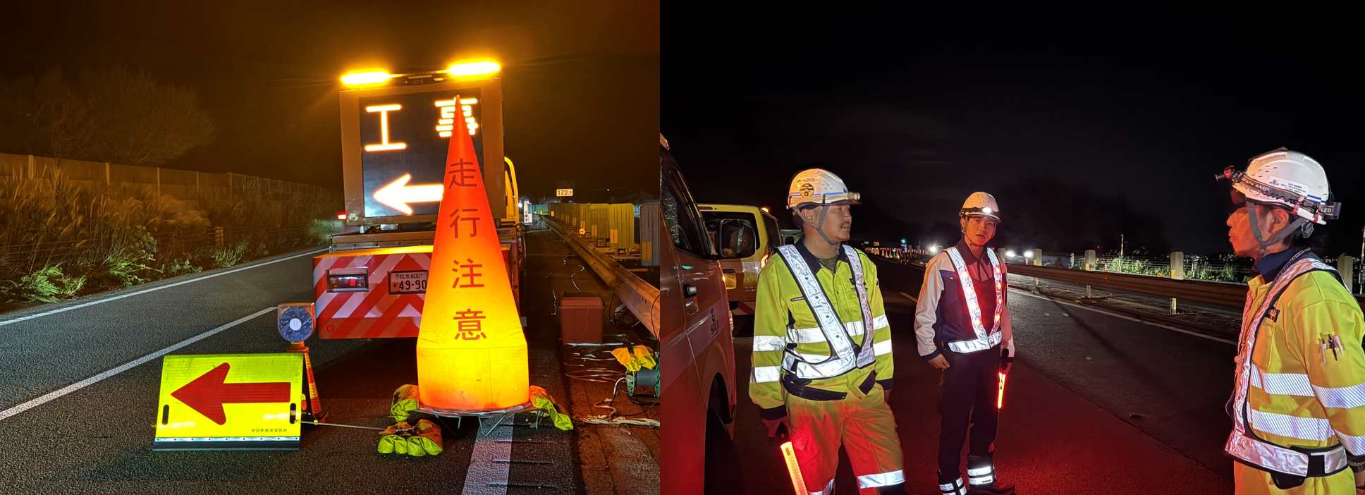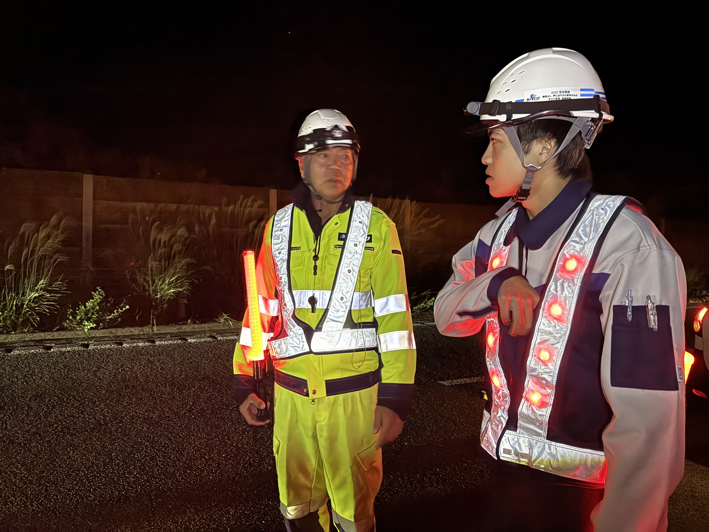 全員で怪我無く夜の現場を乗り越えるように指導しました。