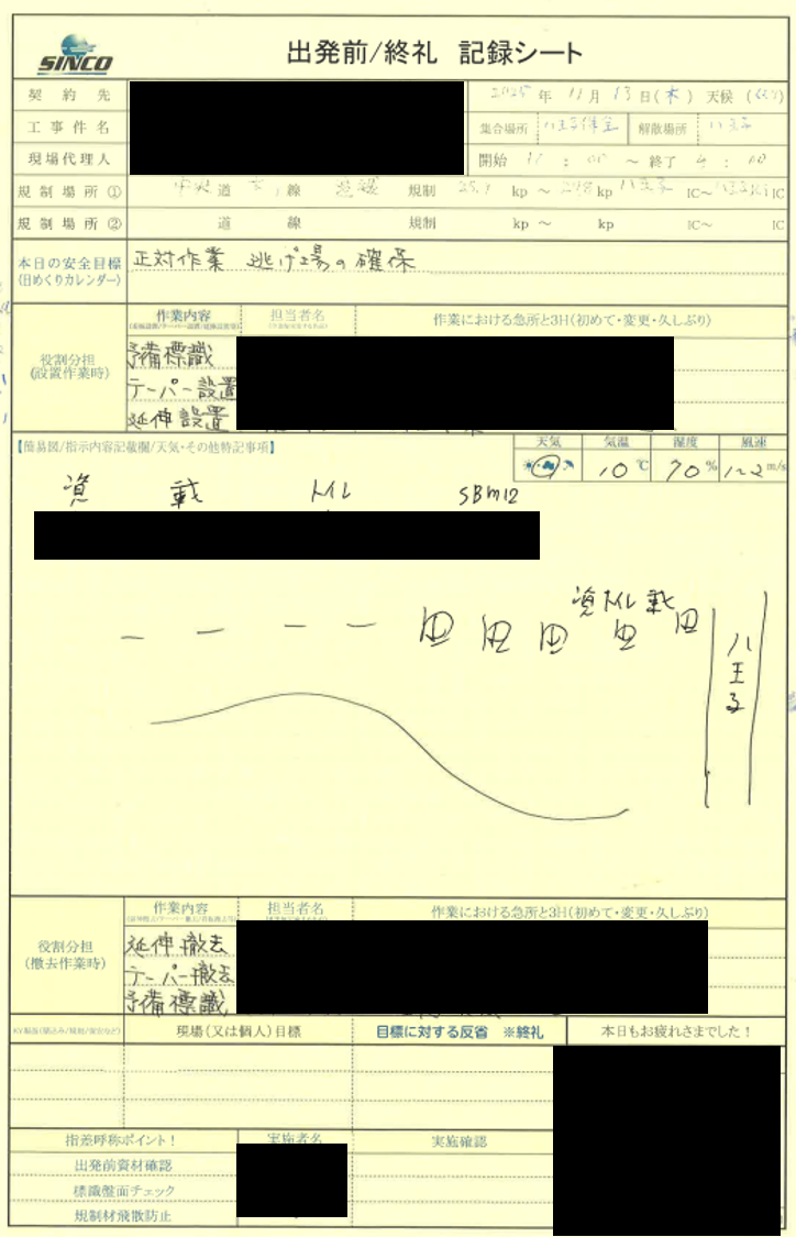 八王子保全での準備では標識車の表示確認や資材数量の確認も指差呼称で確認を行い、