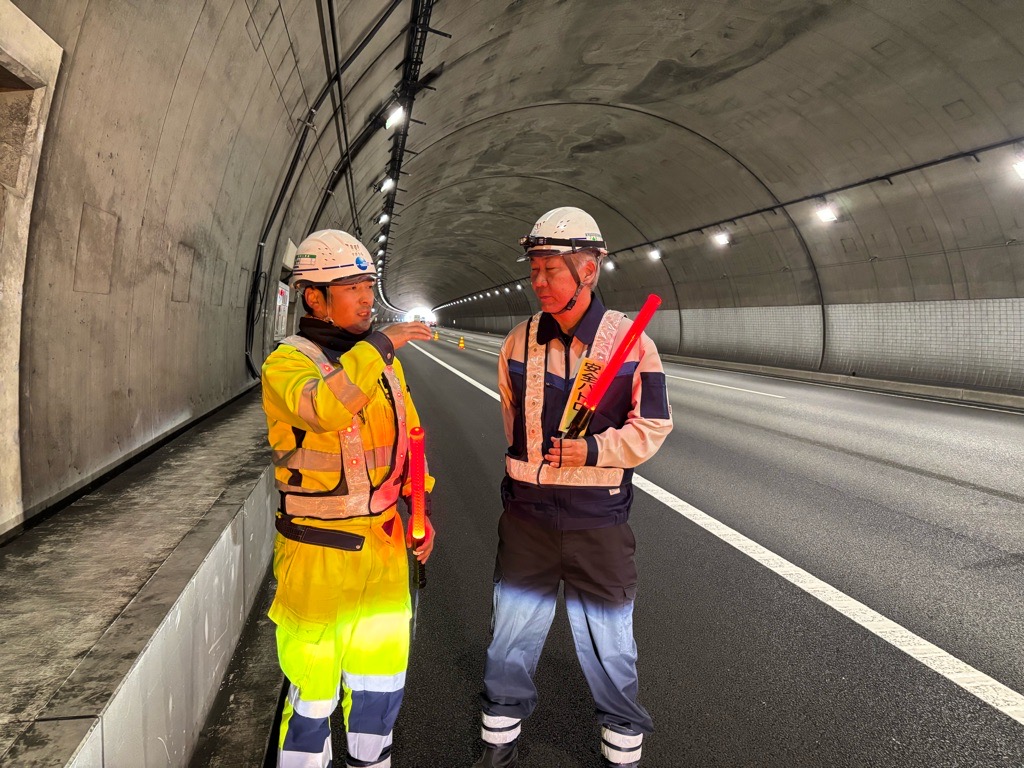 トンネルが2つありますのでチョッキ・誘導灯必要です。