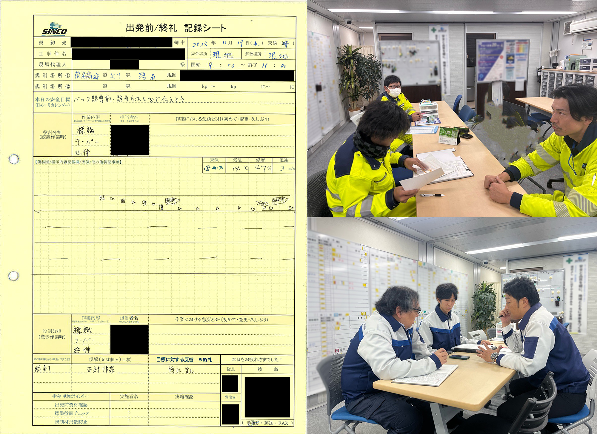 一般車が近くを走行するため動向に注意し正対作業を心掛けるように
