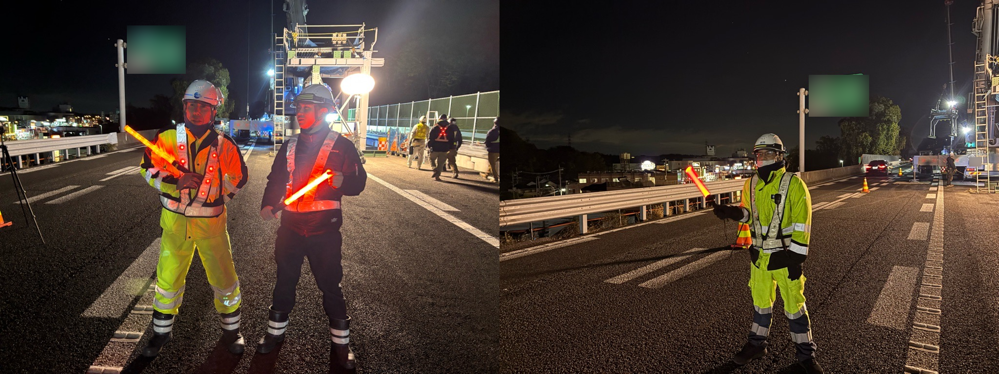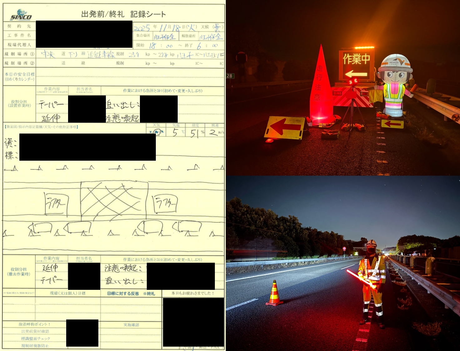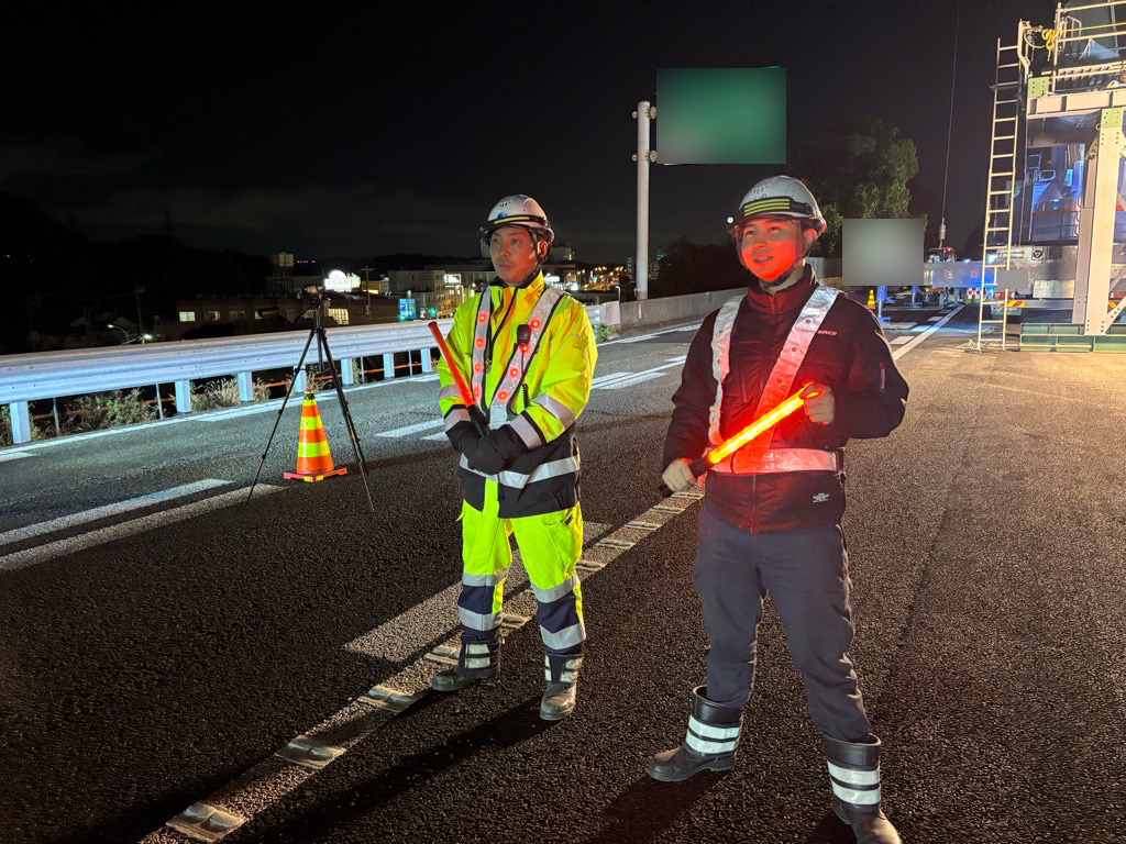 安全管理体制は概ね良好であり、車線シフト規制下の夜間作業として