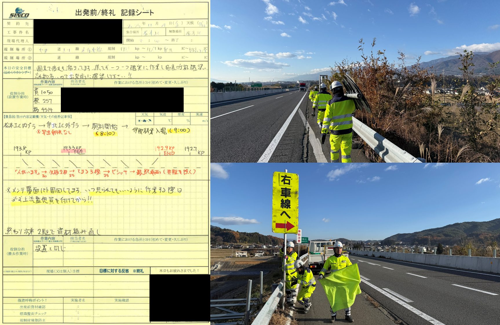 設置パトロール 中央自動車道上り線走行車線規制(松本営業所)