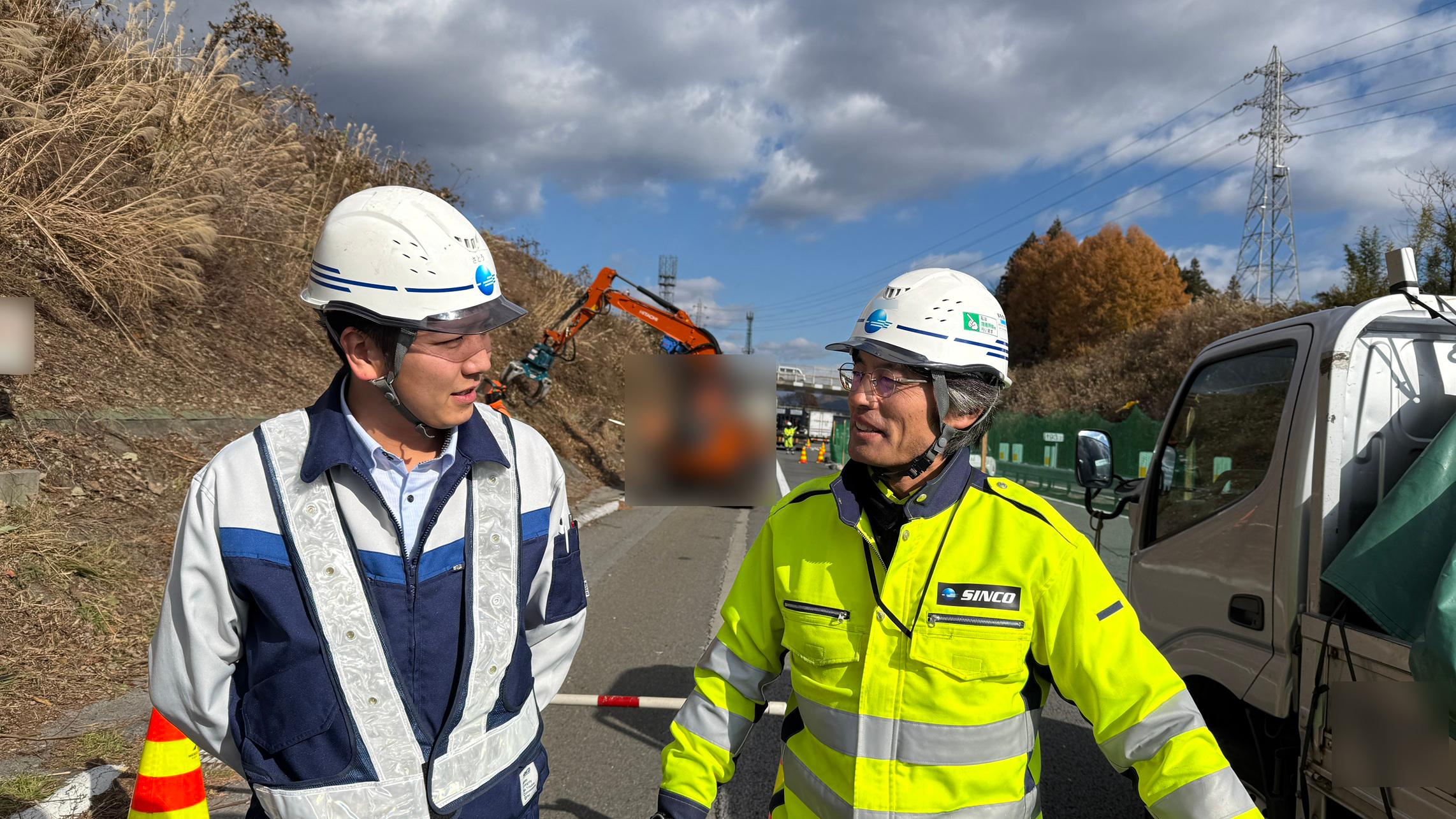 サイドミラーによって余計に距離感が掴みにくい状況で、標識車の運転手は苦労していました。