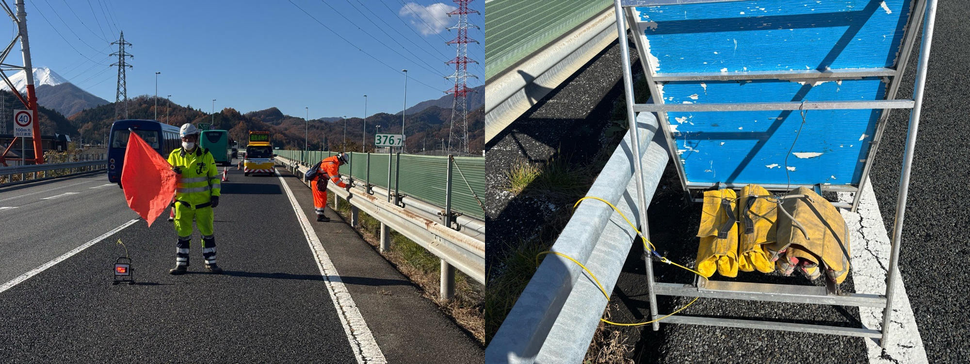 中央道下り(376.1~377.6kp)における追越し車線規制下でのガードレール点検について、