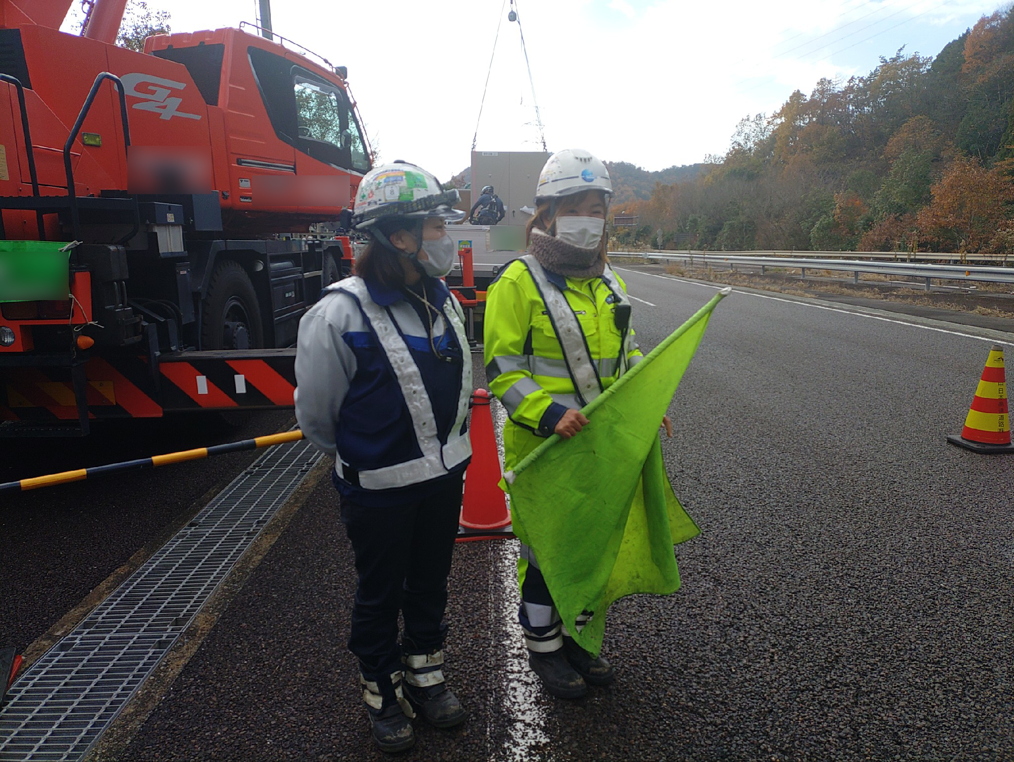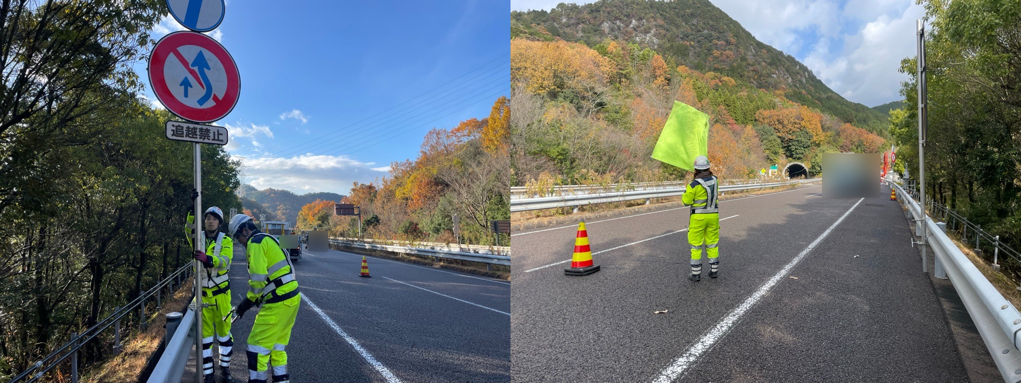 当社の業務としては、規制設置と低速走行時の先導・後尾警戒車の運転になります。