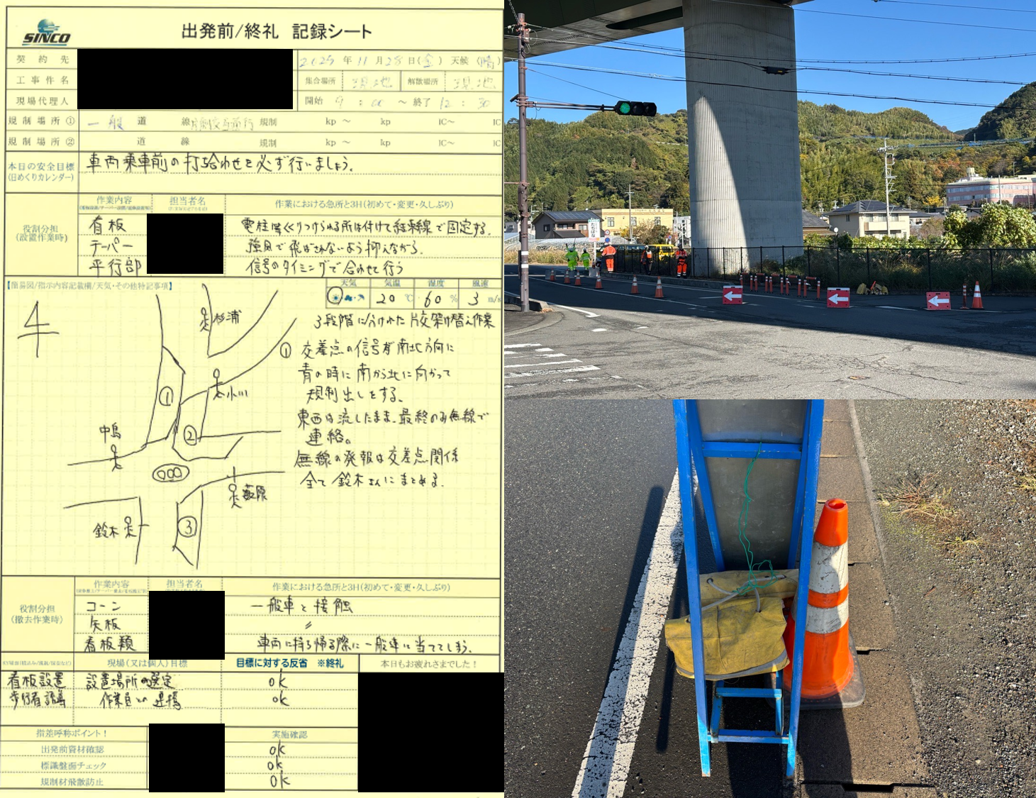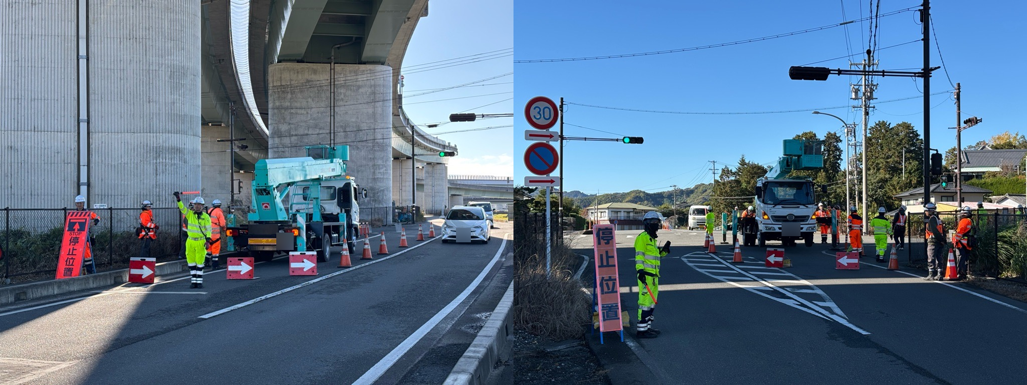 9:00を回り交通量が落ち着き信号が赤になったタイミングで設置開始。