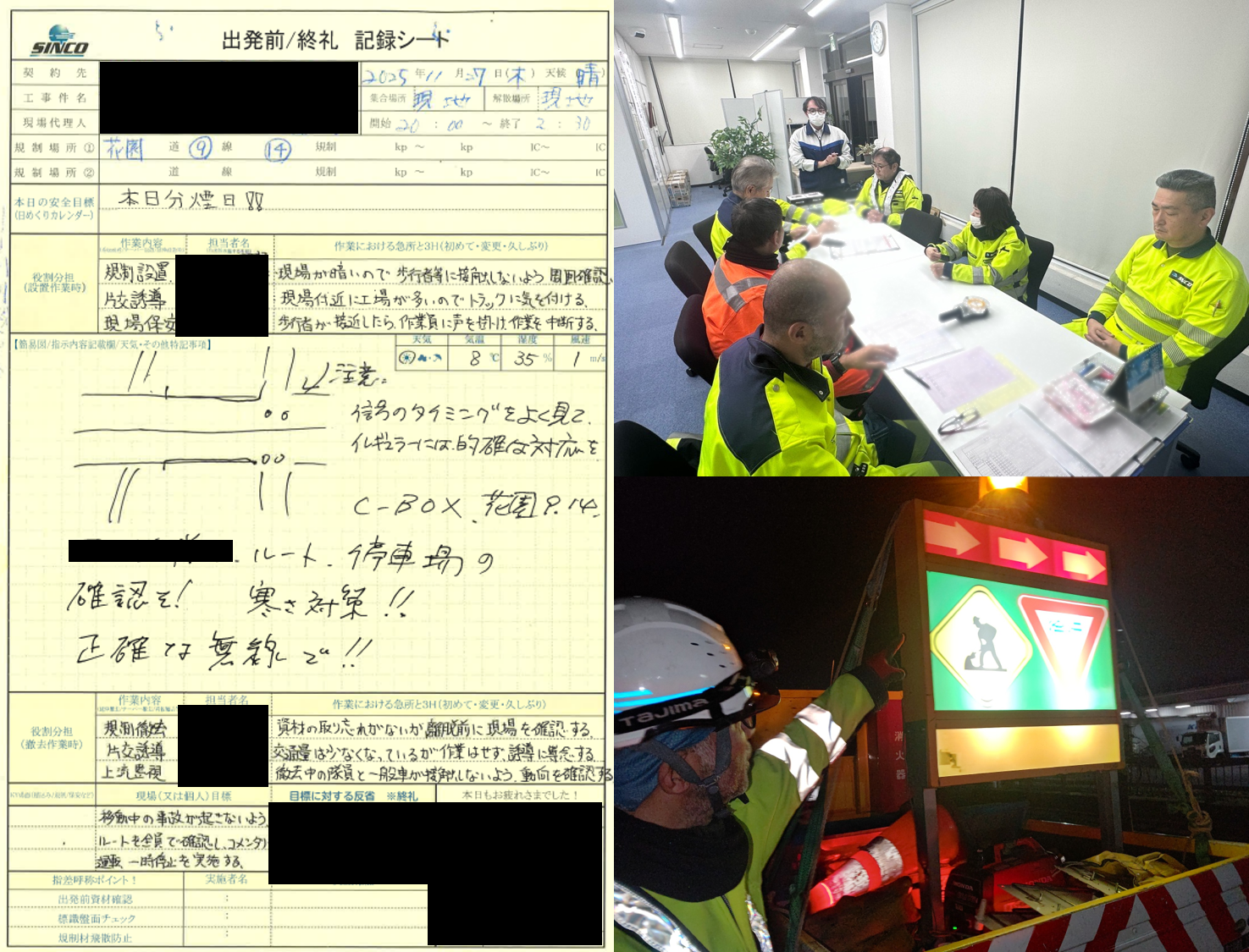 ・設置撤去中は上流監視が一般車の動向を確認し、