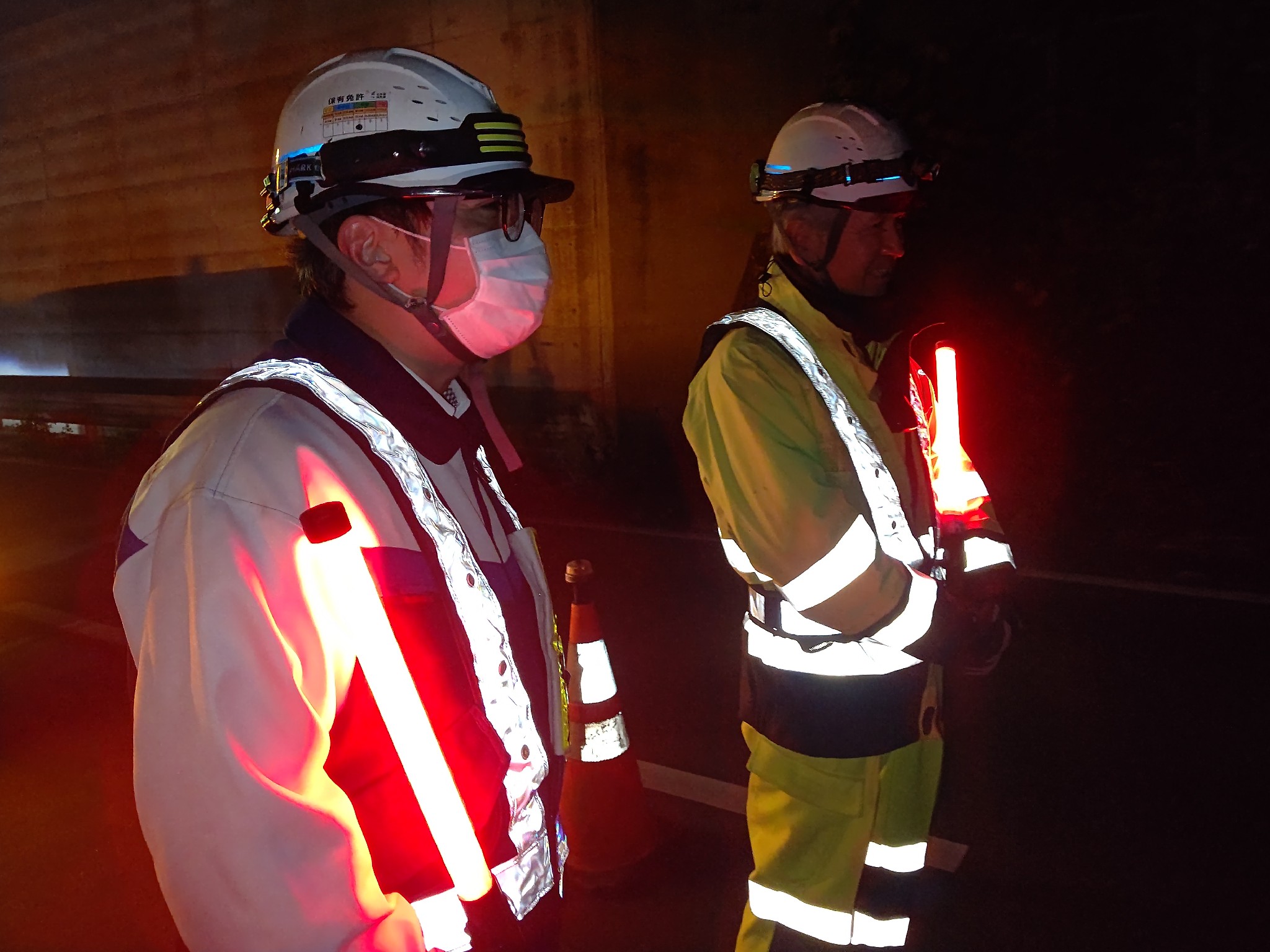 ・作業中はヘッドライトを使用し手元や足元を良く確認して作業する。