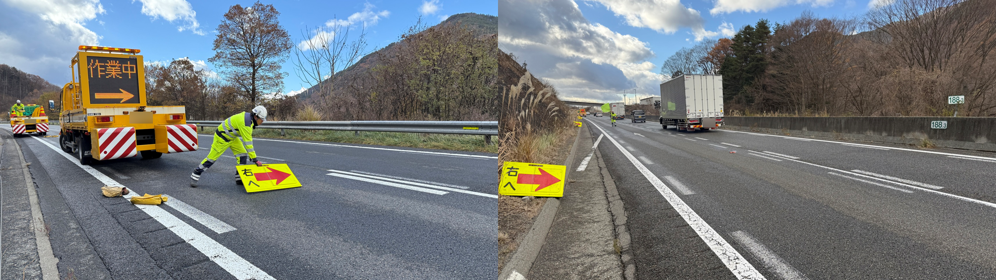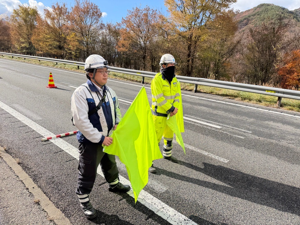 設置パトロール 中央自動車道下り線走行車線規制(松本営業所)