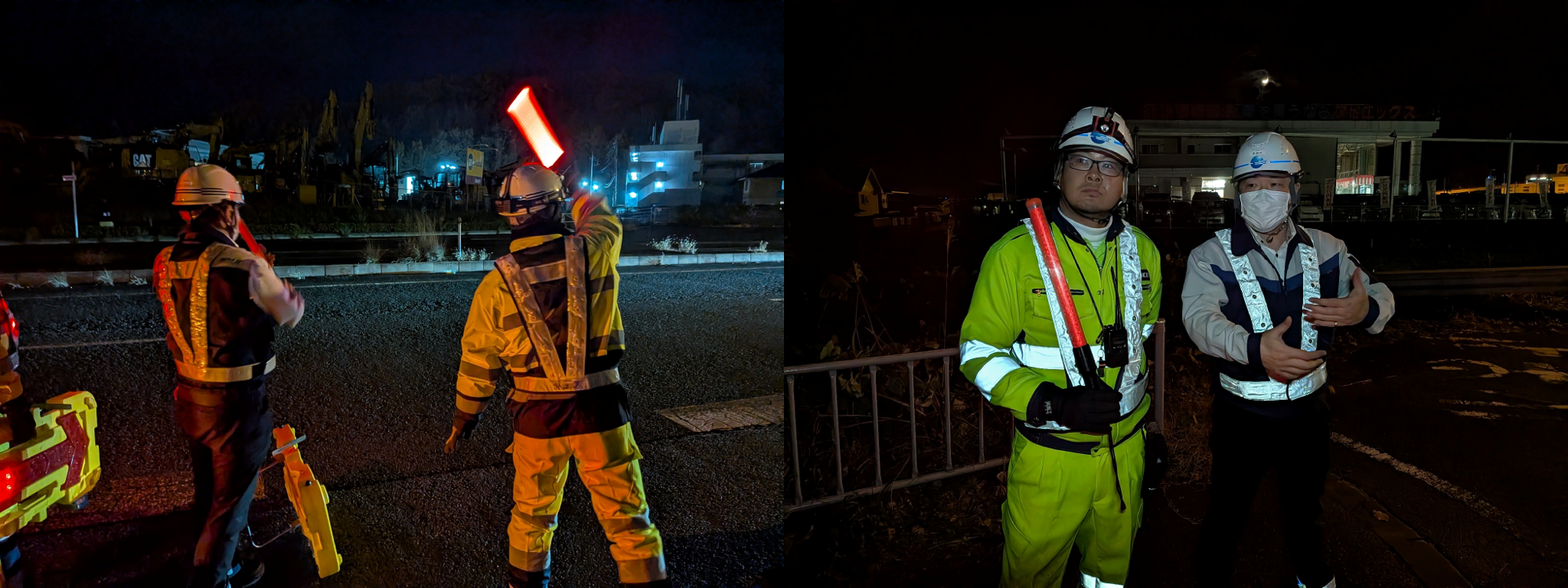 今週、24日からスタートした夜間現場の安全パトロールを実施。