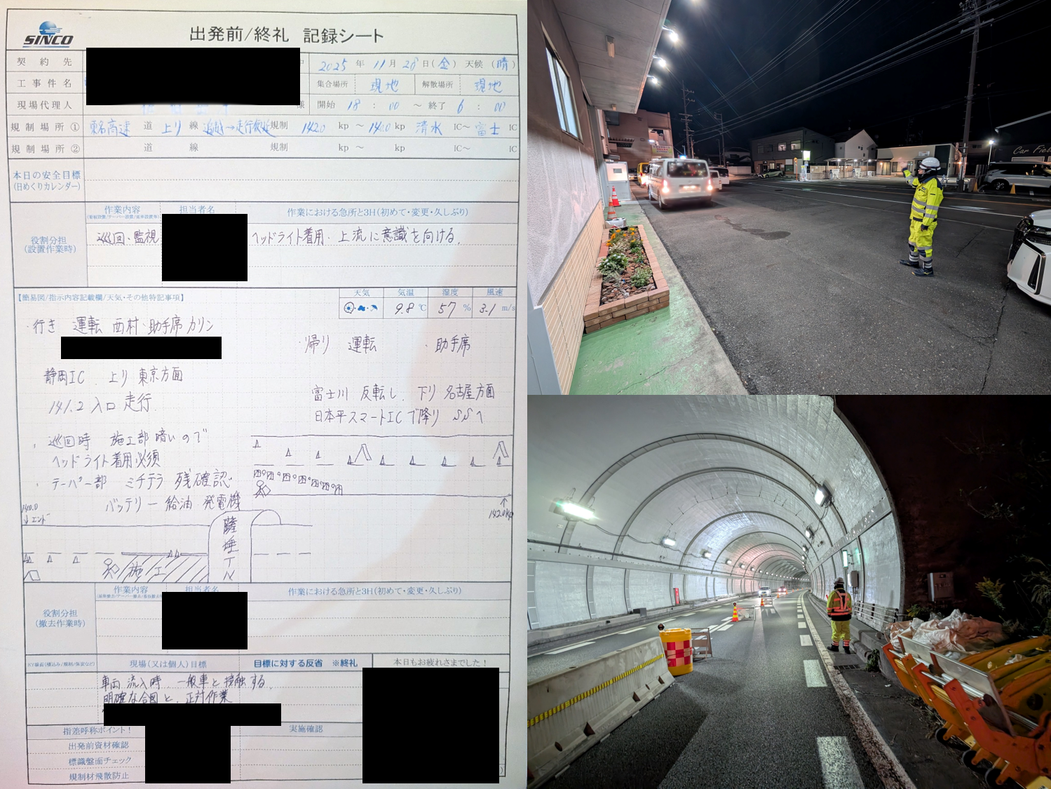 西松建設様の昼夜連続規制内の規制保守・巡回業務となります。