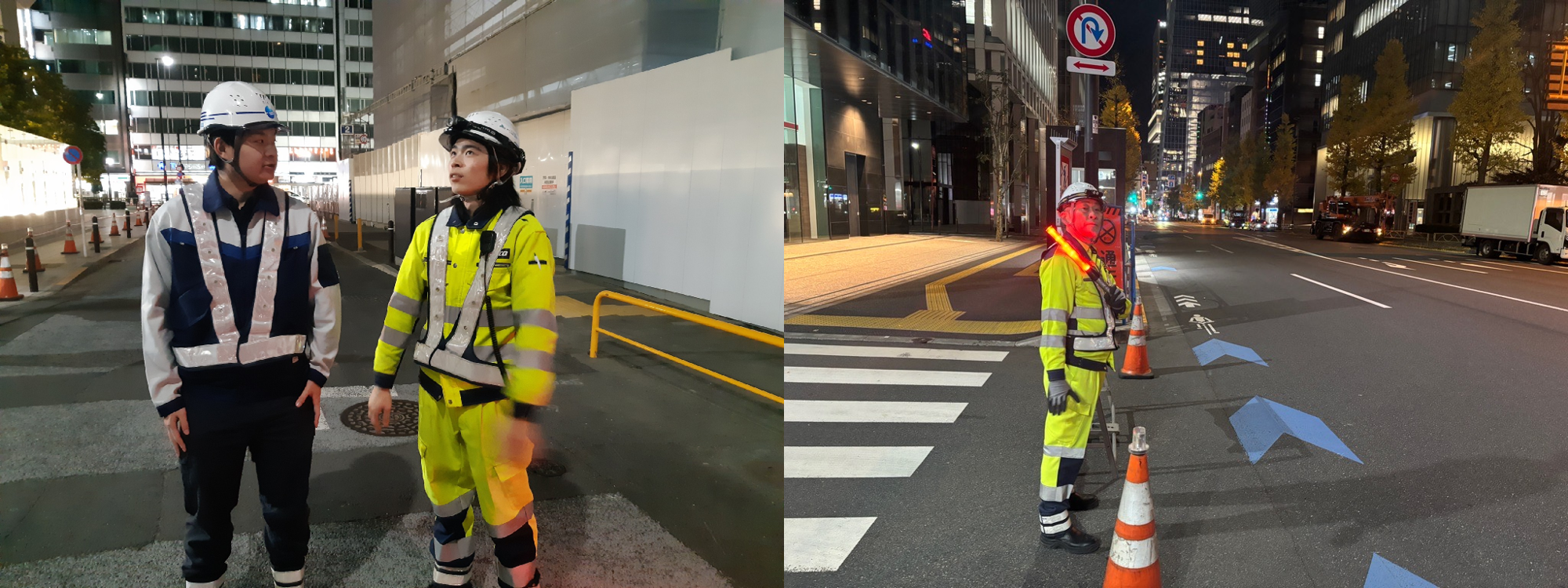 歩行者誘導中の現場職員の表情や声色は穏やかで、非常に良い誘導ができていました。