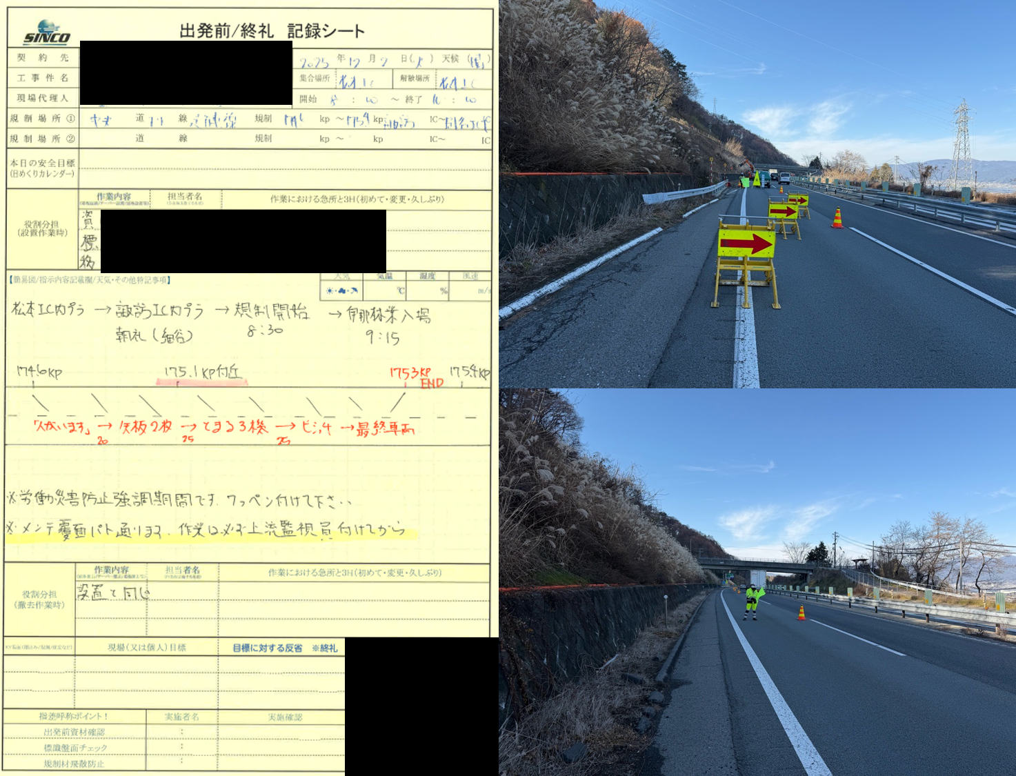 また撤去時は薄暮時と重なってきますので一般車の動向に注視し正対作業を徹底するよう指導し、