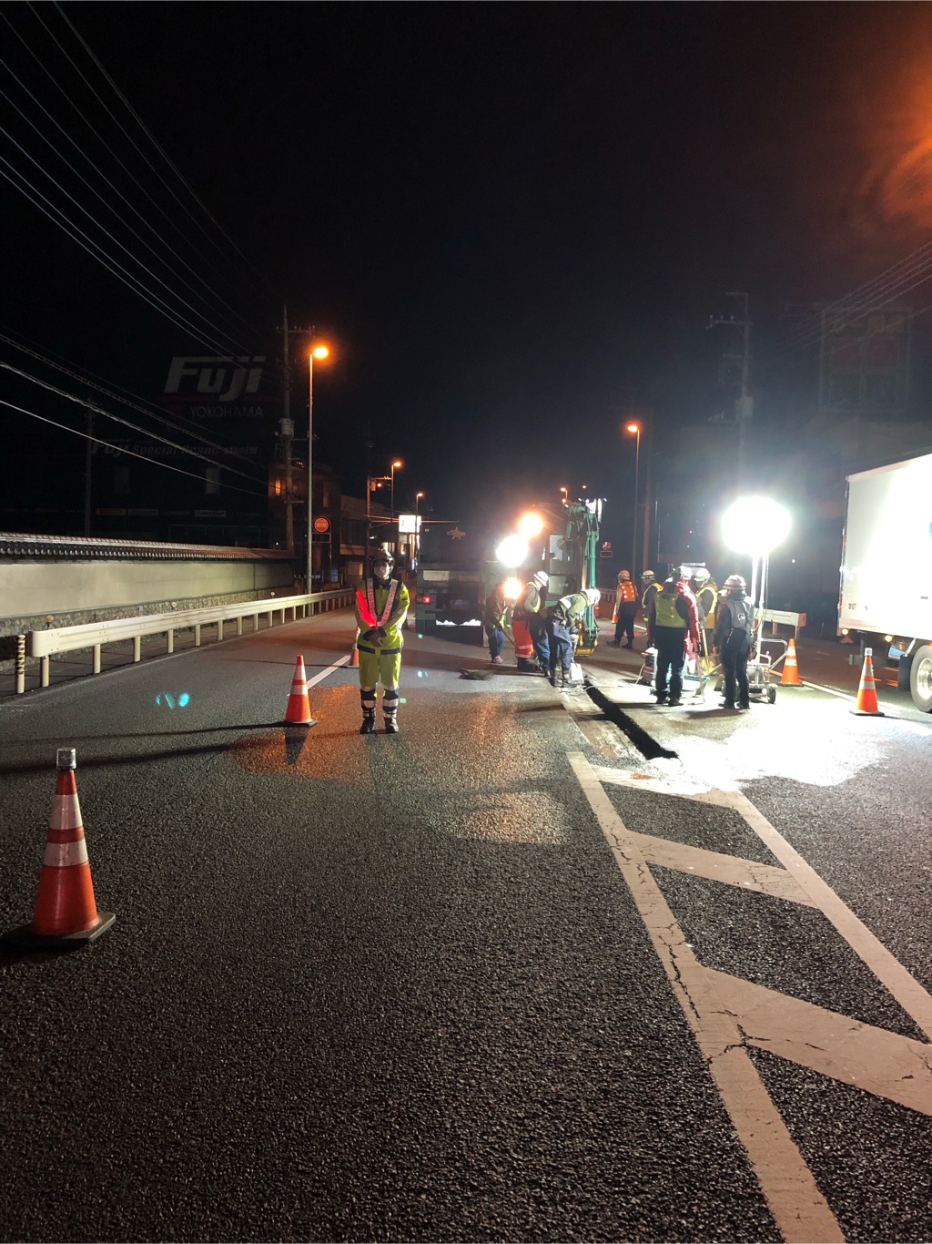 夜間街路規制現場になります。(ブリーフィングに立会い、保安時よりパトロールを実施)