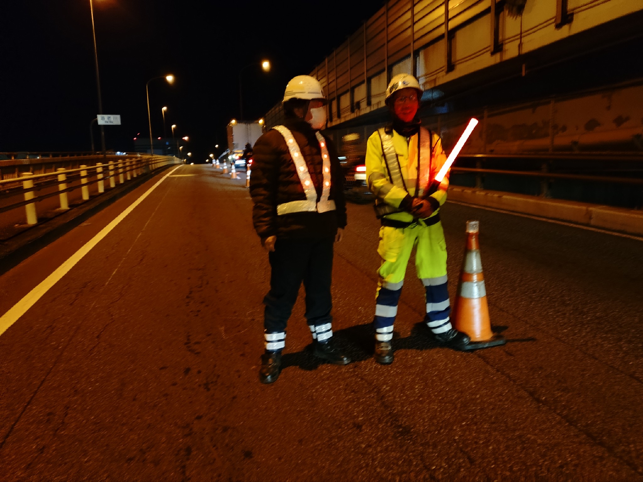 所長パトロール 国道357号東行き走行車線規制(葛西営業所)