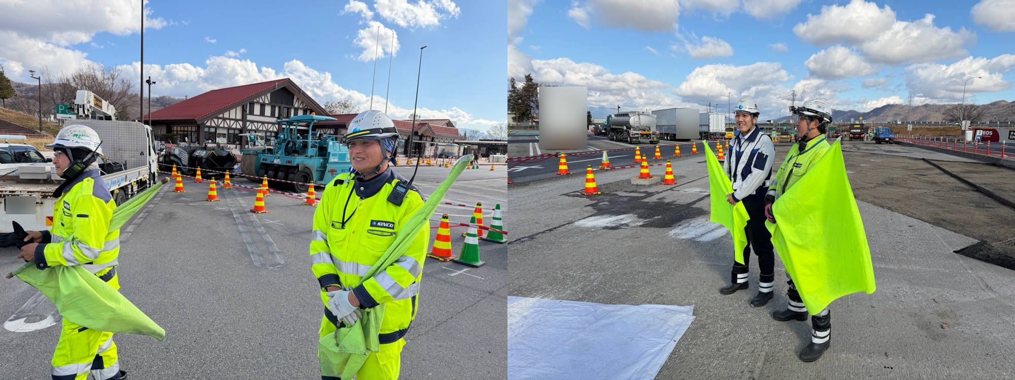 今回は長野自動車道梓川SA内の舗装改良工事を3班体制で行っている現場に
