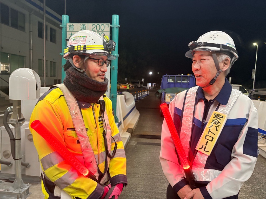出来ていた。夜間現場なのでヘルメットにヘッドライトの着用も皆さんOK。