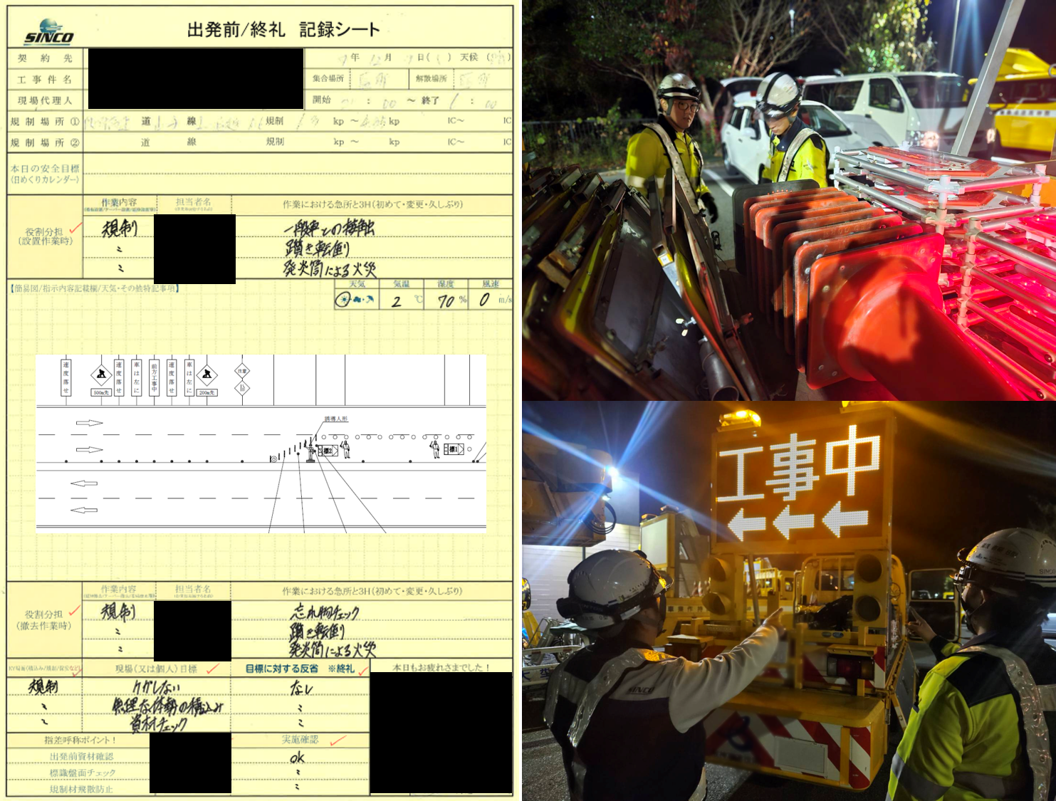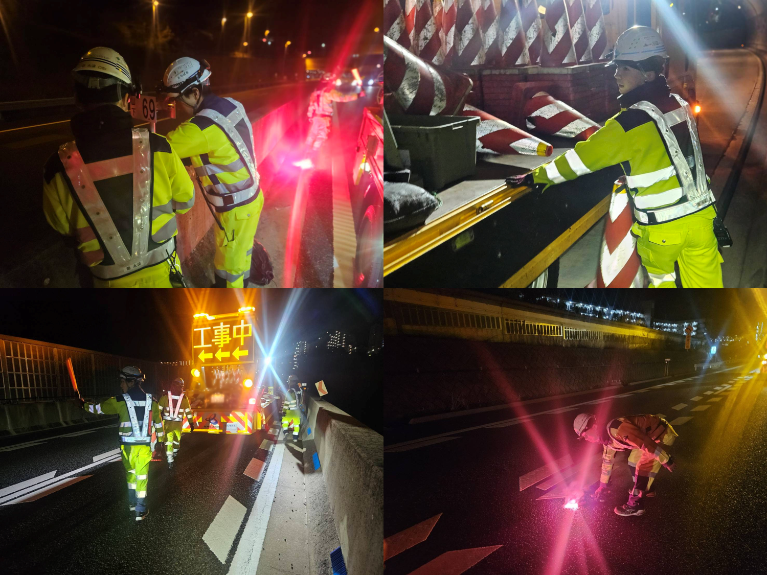 予告標識~テーパー設置までは、逃げ場確保と正対作業の徹底ができていた。