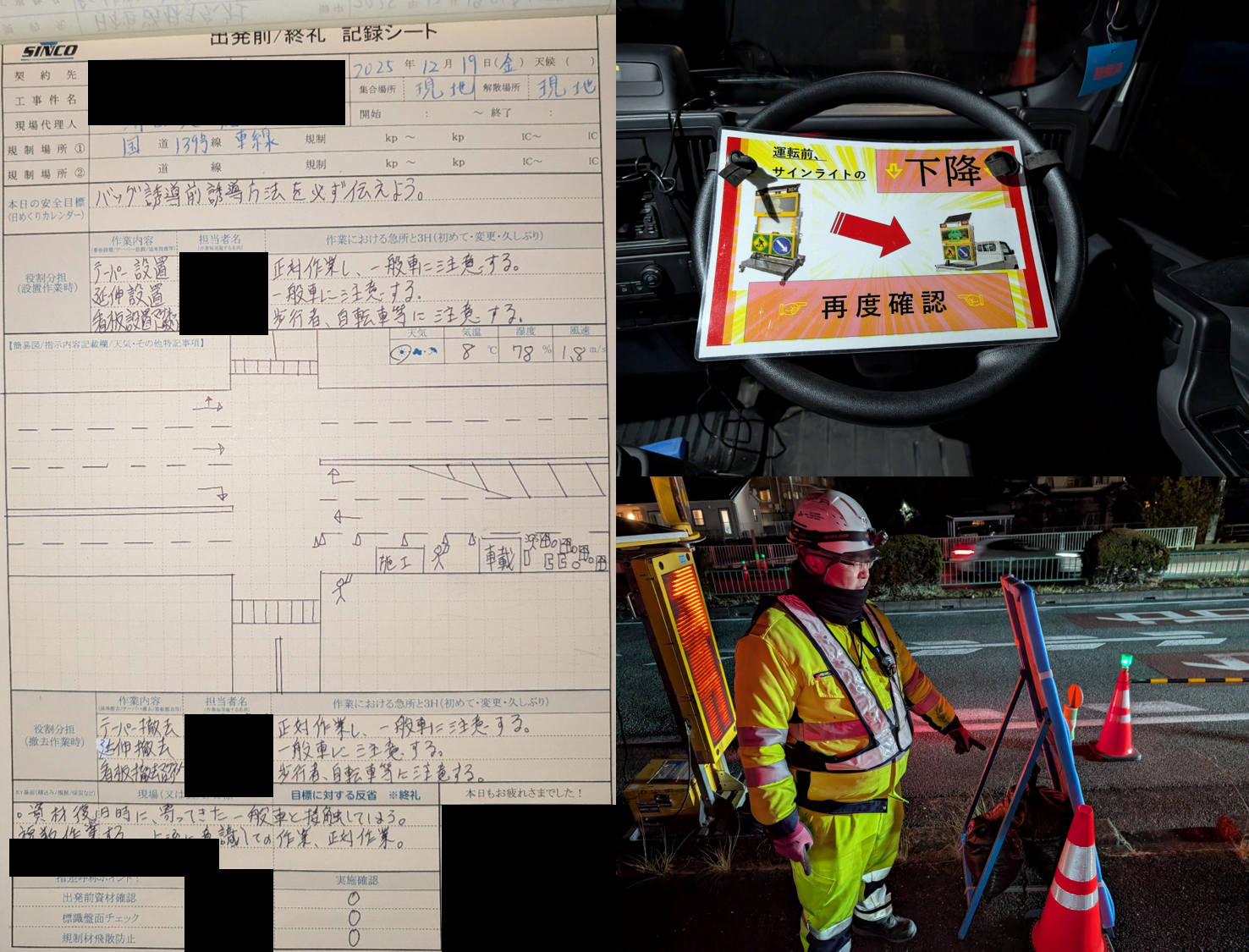 規制材(AV・看板・矢板)の固縛・固定が出来ていない面などまだまだ課題はあると感じると共に、