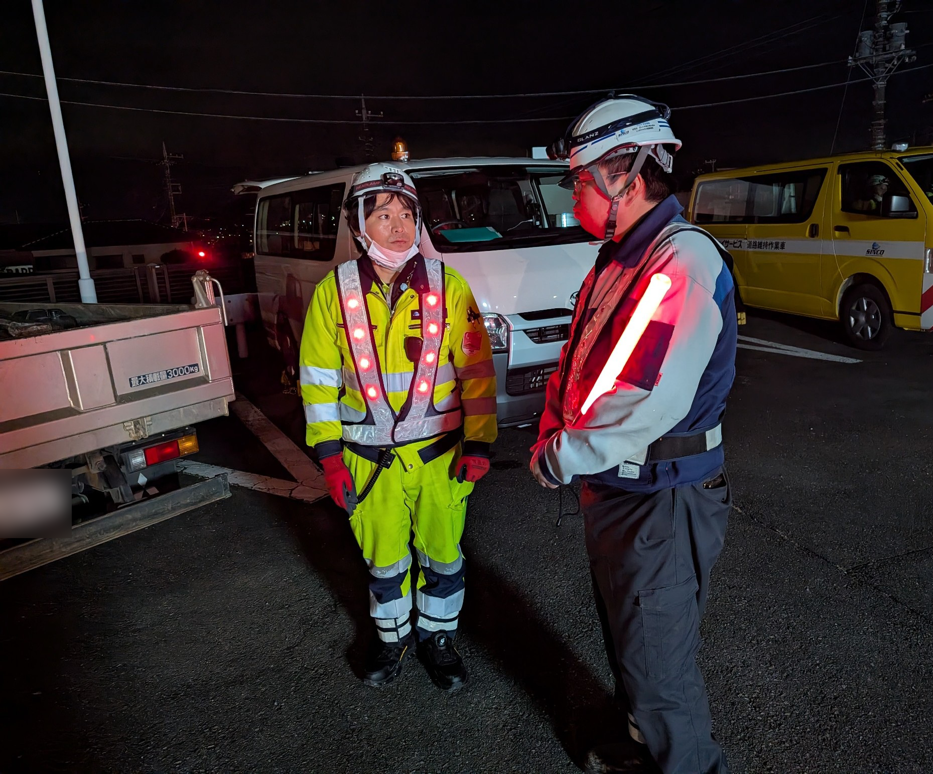 設置時は、夜間の現場ということもあり、足元を照らすヘッドライトを